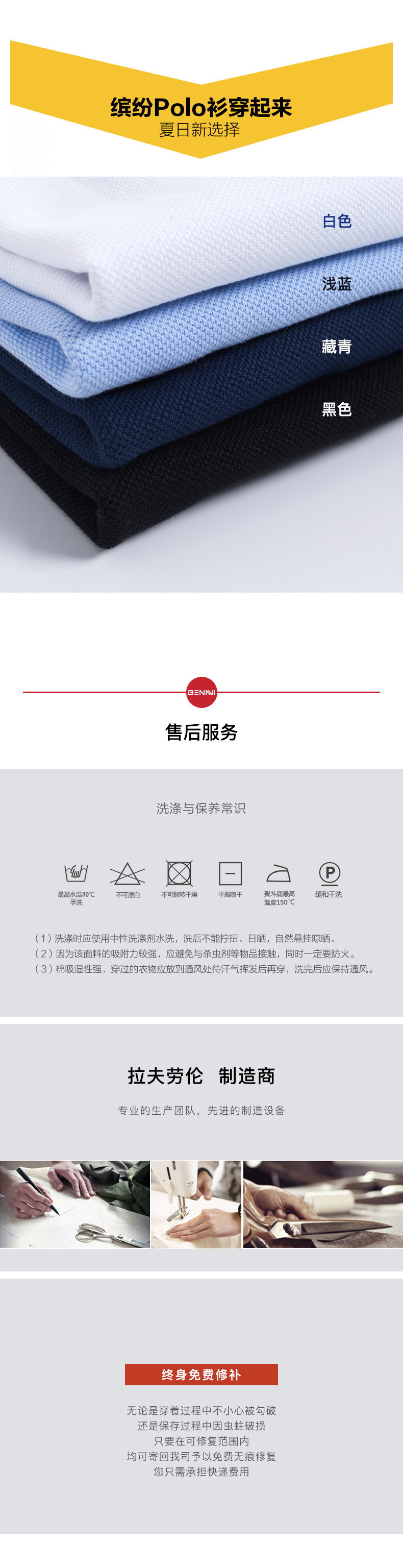 本米男士polo衫,面料为100%美国皮马棉,珠地网眼结构,比普通针织布更透气、透湿、干爽及更耐洗,夏天穿舒适又好打理。