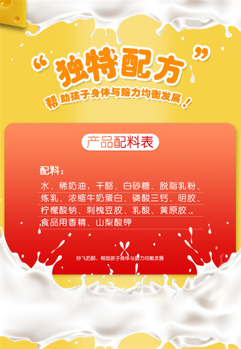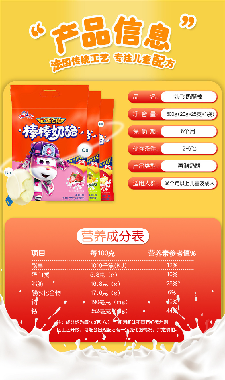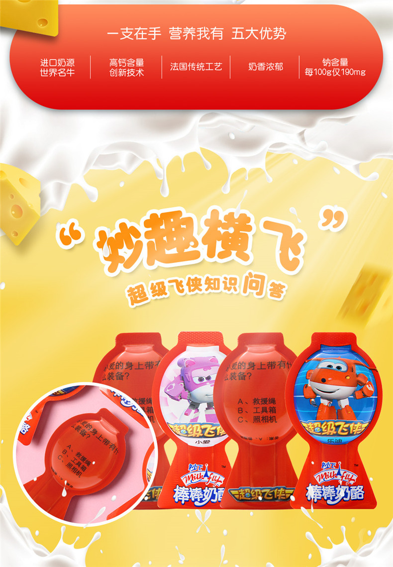 天猫妙飞旗舰店69元,可领20元优惠券,实付49元到手,营养高钙,助力骨骼;法国工艺,专为儿童研制。精选进口奶源,每支含68mg钙含量,约是牛乳的3倍,每百克蛋白质含量5.4g,约是普通牛奶的2倍,奶香浓郁,入口细腻香甜,营养又美味,孩子超喜欢。采用欧洲进口原装内膜封装保鲜,奶酪棒与外壳分开封装使用更安心。