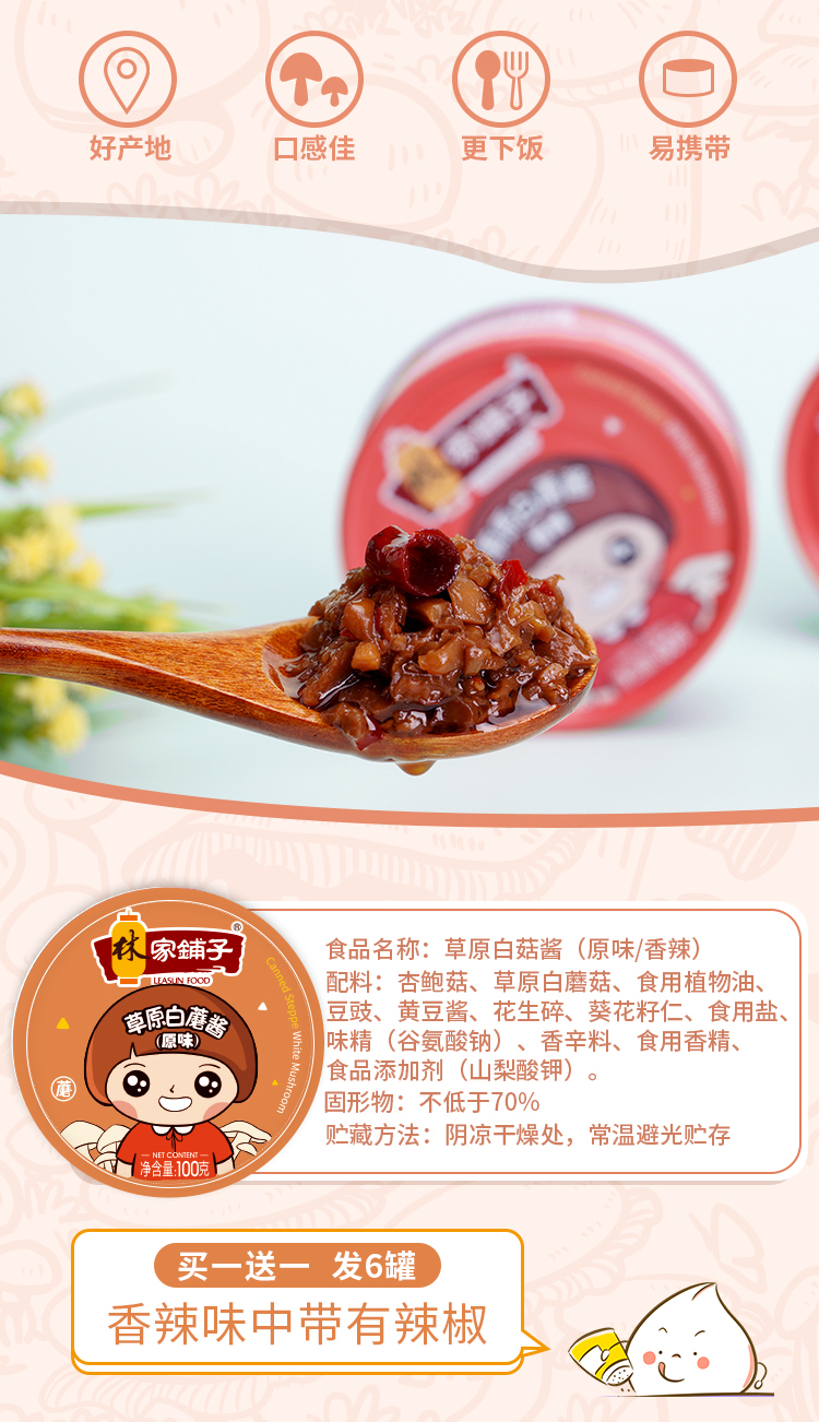 天猫林家铺子食品旗舰店24.9元,可领10元优惠券,两件件6折,拍两件实付19.88元到手6罐,有原味和香辣可选。内蒙古草原白菇原料,优选辣椒,独特口感,甜中带辣韩式风味,多种吃法,