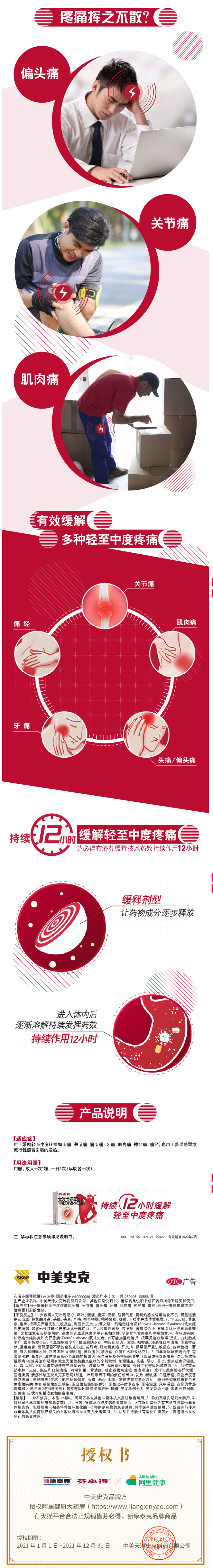 布洛芬是著名的非处方止疼药,含对乙酰氨基酚和咖啡因,对于头疼、关节疼、肌肉疼、牙疼等各类疼痛都有缓解作用,也适用于普通感冒或流行性感冒引起的发热,是家中常备药。1粒可管12小时。