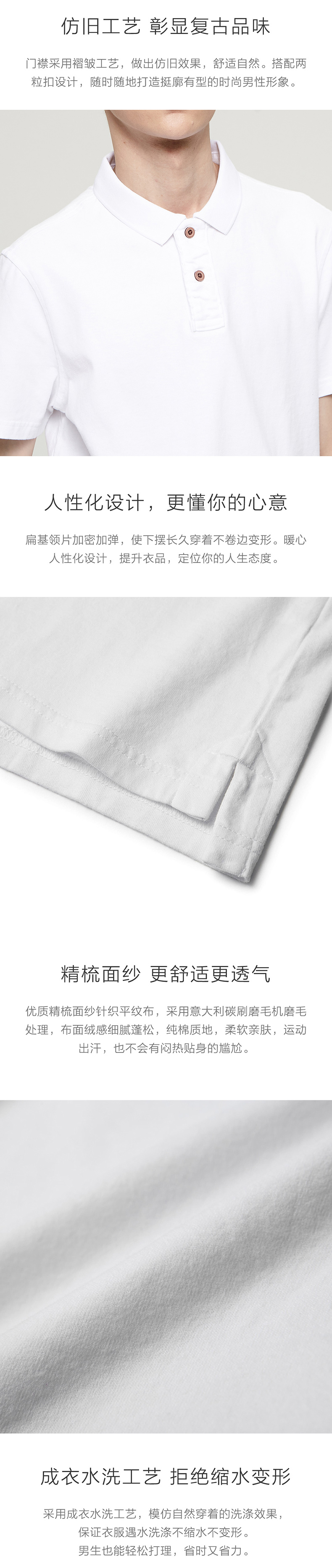 这款凡客 男士 复古纯棉POLO衫,采用100%精梳棉面料,水洗工艺磨毛处理,布面绒感细腻蓬松,相比普通纯棉,更加亲肤舒适,吸湿透气,即使运动出汗也不会有闷热贴身的尴尬,而且不易缩水变形,门襟采用褶皱工艺,做出仿旧的效果,搭配2粒纽扣,彰显复古品味,穿着时尚有型。