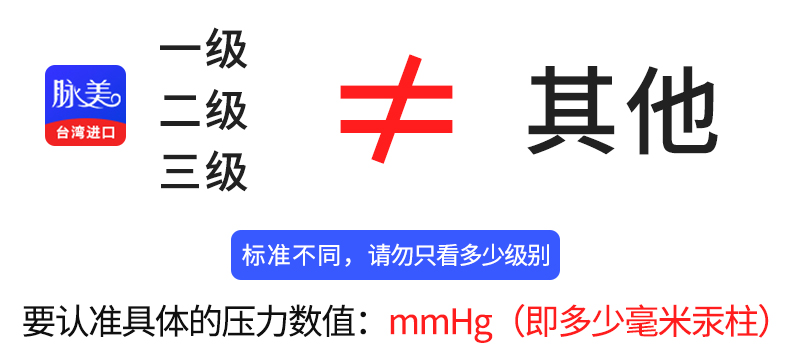 一级压力(20-30mmHg),适用于轻度症状人群,如轻微的下肢血管突出、红血丝、站立时间稍长伴有腿部酸胀、肿痛。