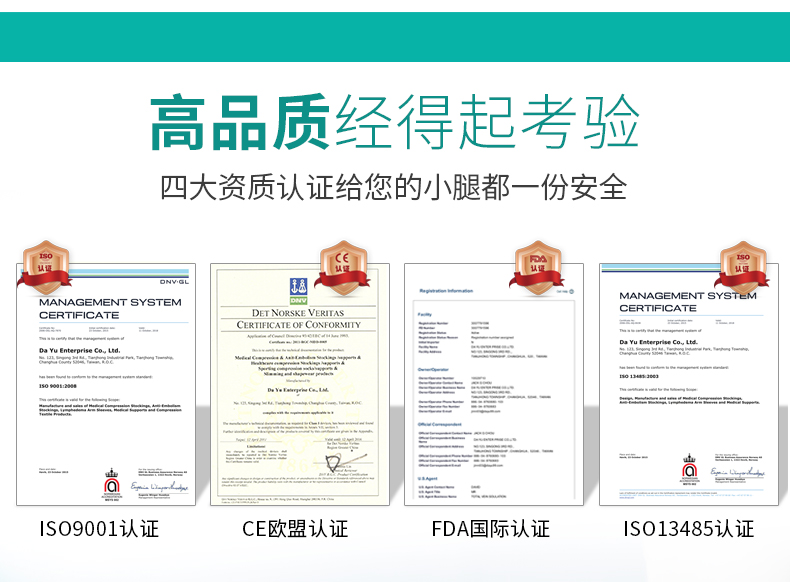 产品经过进口医疗器械注册证、瑞士SGS通用公正行、CE欧盟质量管理体系、IOS质量验证体系,品质安全靠谱。面料是锦纶+莱卡弹(弹性比普通氨纶更好),小编推荐的是一级弹力,适用于轻度症状人群,如红血丝、站立时间稍长,伴有腿部酸胀、肿痛。