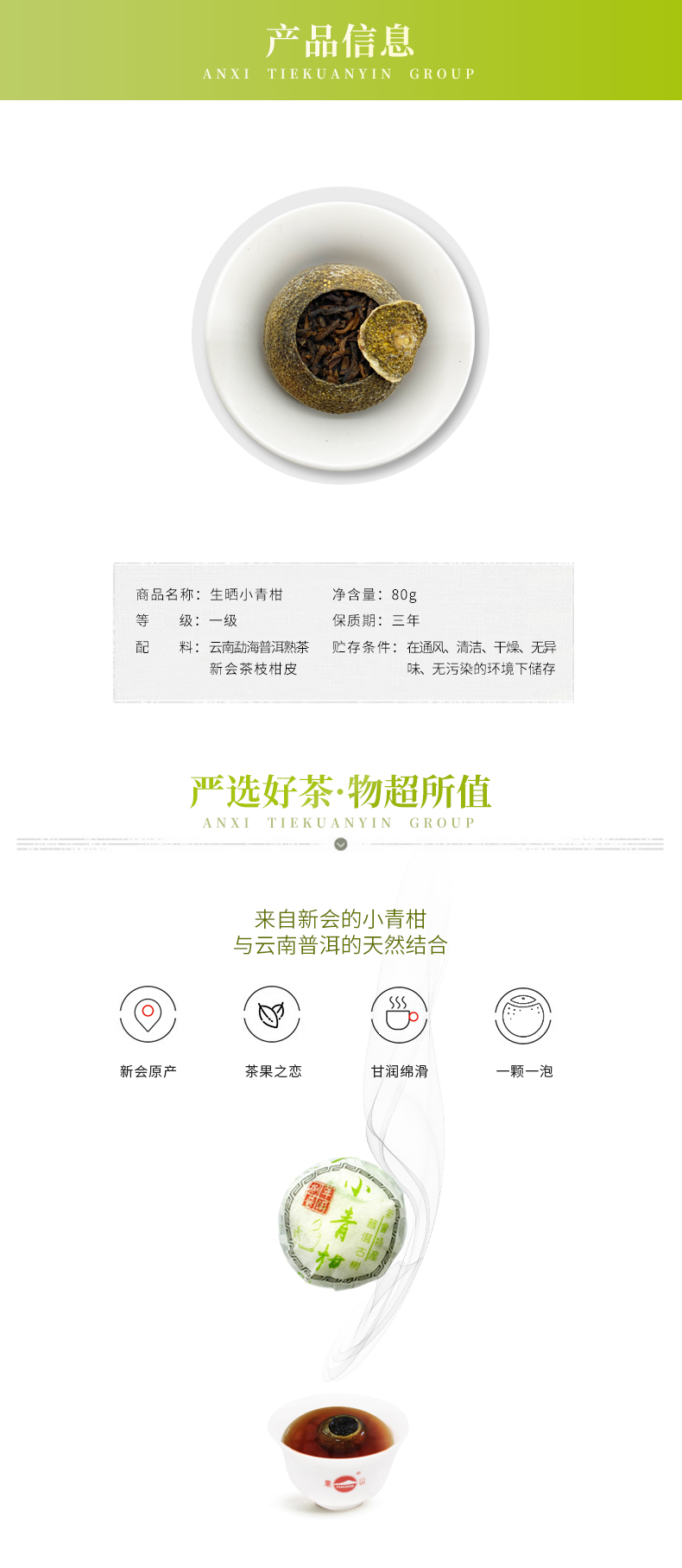 这款凤山 正宗新会小青柑普洱茶,是新会小青柑和云南勐海普洱熟茶的组合,拒绝人工烘焙,而是通过自然晾晒,柑果的果香与茶叶的茶香完美融合,冲泡出的桔普茶,清甜润泽,口感绵柔,一颗可泡一天,回味悠长。