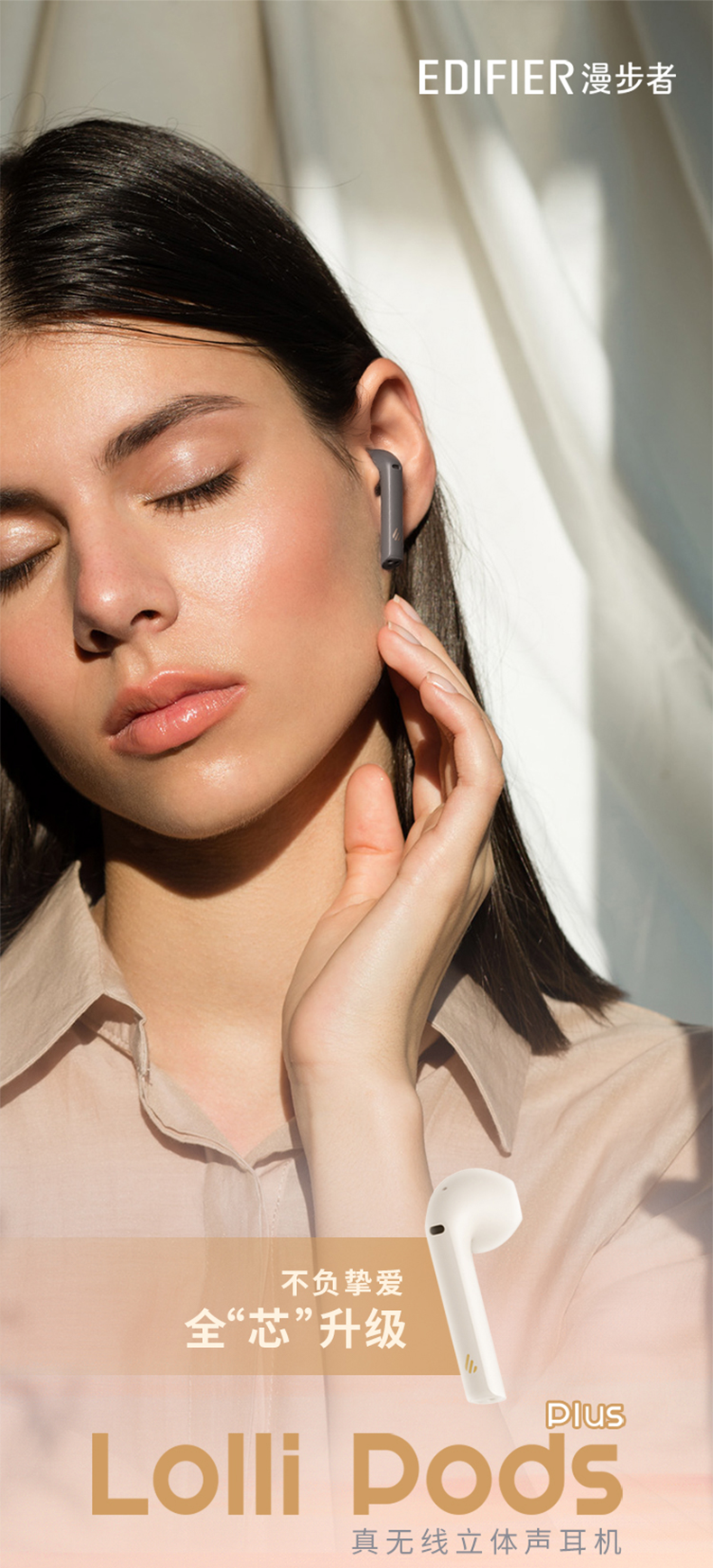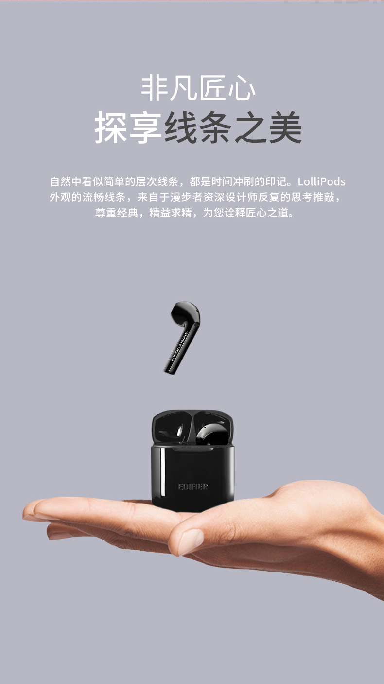 这款漫步者Lollipods是今年刚发布的,使用高通QCC3020芯片,通过蓝牙5.0连接,支持aptX无损解码,音质更强,延迟更低,使用更加省心,13mm大动圈,三频均衡,音质澎湃。