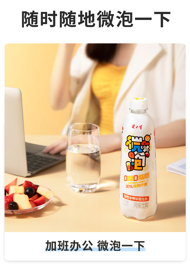 健力宝出品的无糖苏打气泡水,0糖0脂0卡、富含30%的膳食纤维,使用代糖代替蔗糖,不会造成龋齿,身体无负担,果香+气泡劲爽口感,清甜爽口,解辣解腻超过瘾!