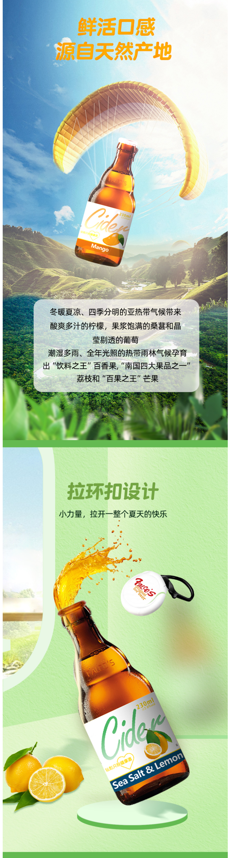 这款珐酷 原浆C打果酒 低度微醺甜酒,选用天然高浓度浓缩果汁味原料,运用新型果酒酿造工艺制成,果汁含量达25%、浓缩比例1:8,富含浓郁果香味,口感鲜活自然清新爽口,酒精度2.8%vol,拉环扣设计。
