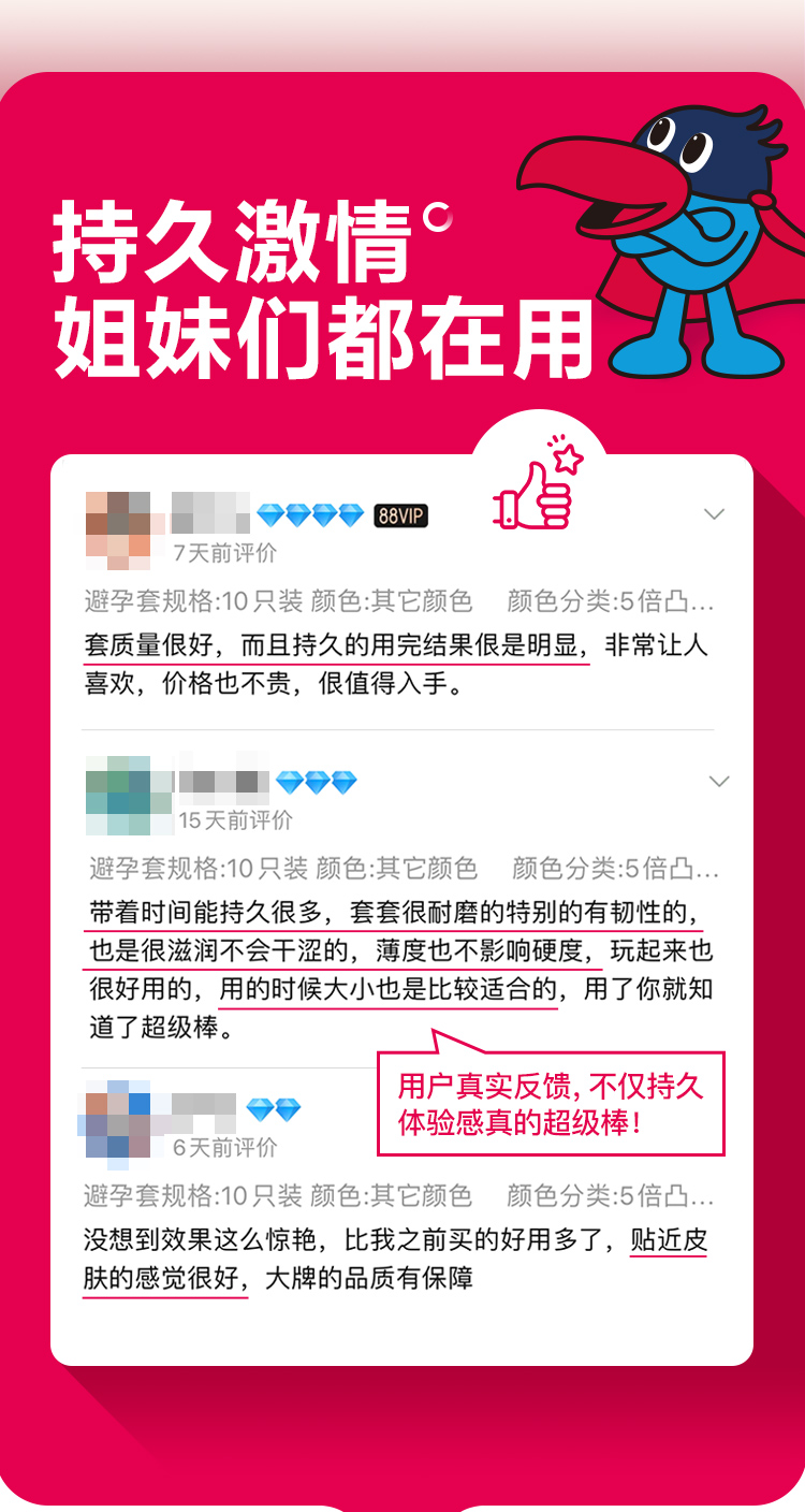 =2.58元 到手价,凑单神价,棒球帽合60元左右,也是好价,如果不需要棒球帽的话,可以付款后直接把棒球帽退掉(有黑号风险),有凸点款和平滑款2种可选,规格为13只。5倍厚适合中度敏感的朋友,7倍厚适合重度敏感的朋友,肤感超柔,加厚延时不丧失快感。