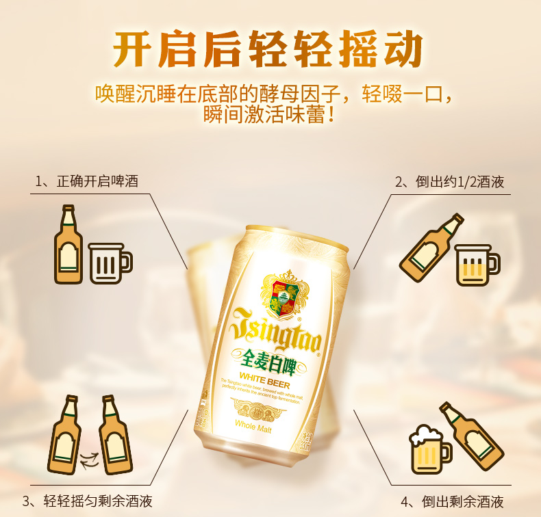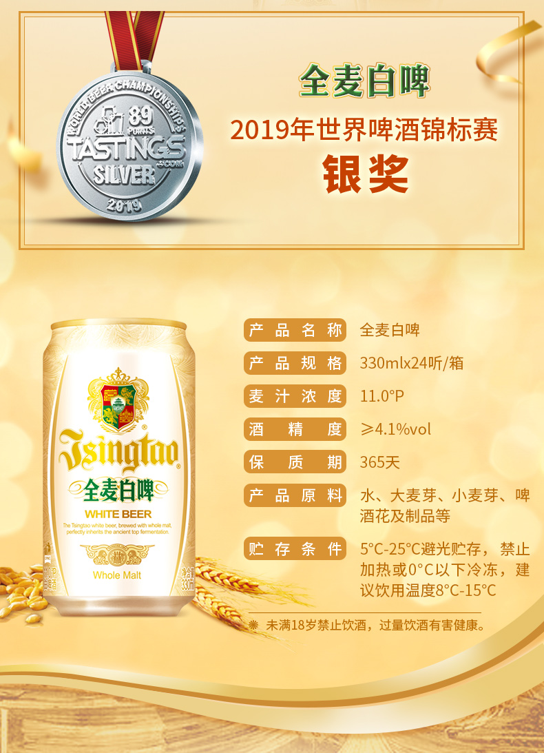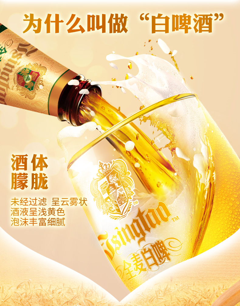 这款青岛啤酒产的全麦白啤酒荣获了“2019年世界啤酒锦标赛银奖”,甄选德国皇室典藏酵母,古法精酿,酒体呈云雾般朦胧感,泡沫丰富,细腻丝滑,拥有丁香花与果香混合的木醺口感,层次揉叠,回味悠长,