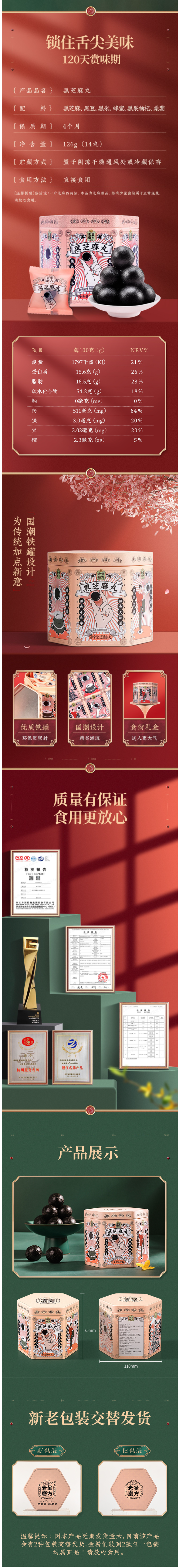 选用当季黑芝麻,颗粒饱满,干净无杂质,香脆美味,清洗后高温烤制需要把握精准的火候;用蜂蜜代替糖调制蜜丸,口感稍甜却不腻,蜂蜜清润细腻,不粘牙。单颗独立包装,充氮保鲜。领券链接点此