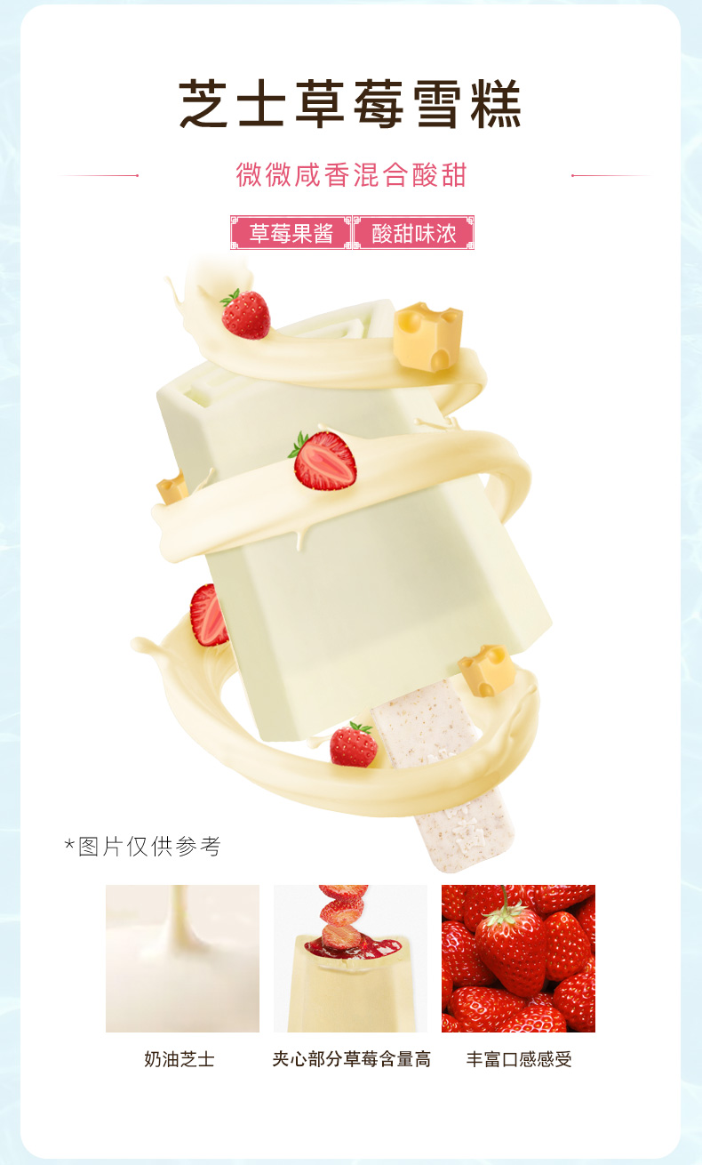 特添加夏日新口味,优选纯正奶源,地道奶味,真实果肉看的见,六味十只让你一次过足瘾。套餐包含:杏子奶冰 2片、半巧主义 2片、话梅肉肉冰 2片、芝士草莓 2片、草莓白巧 1片、爱尔兰陈年干酪 1片。