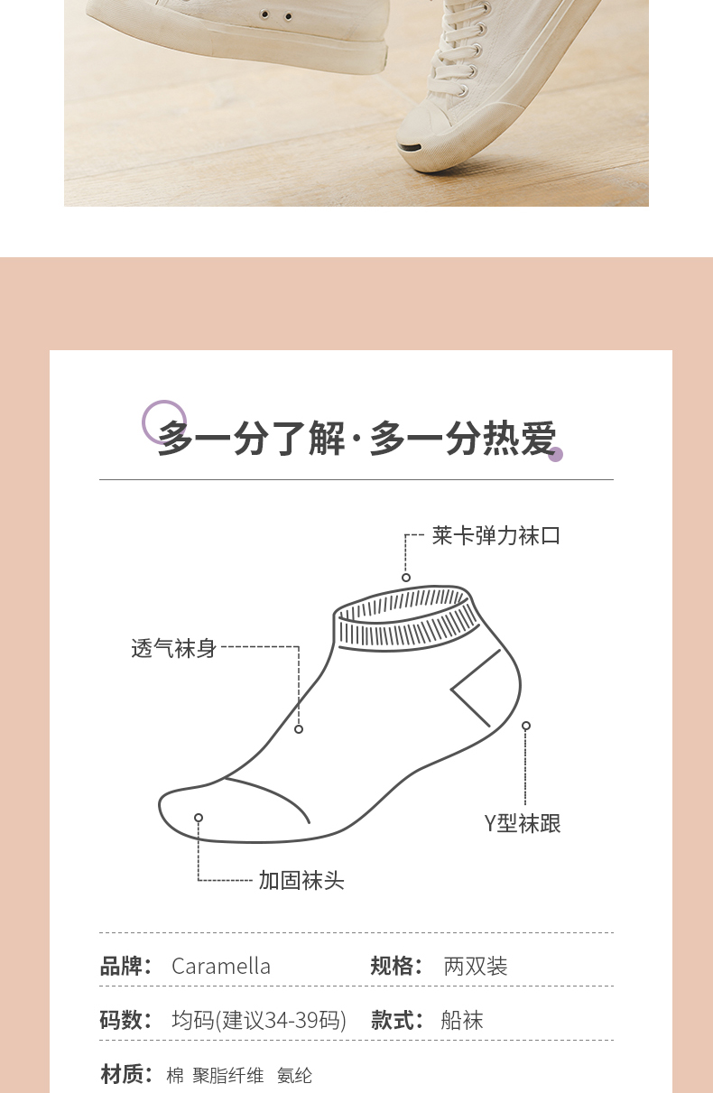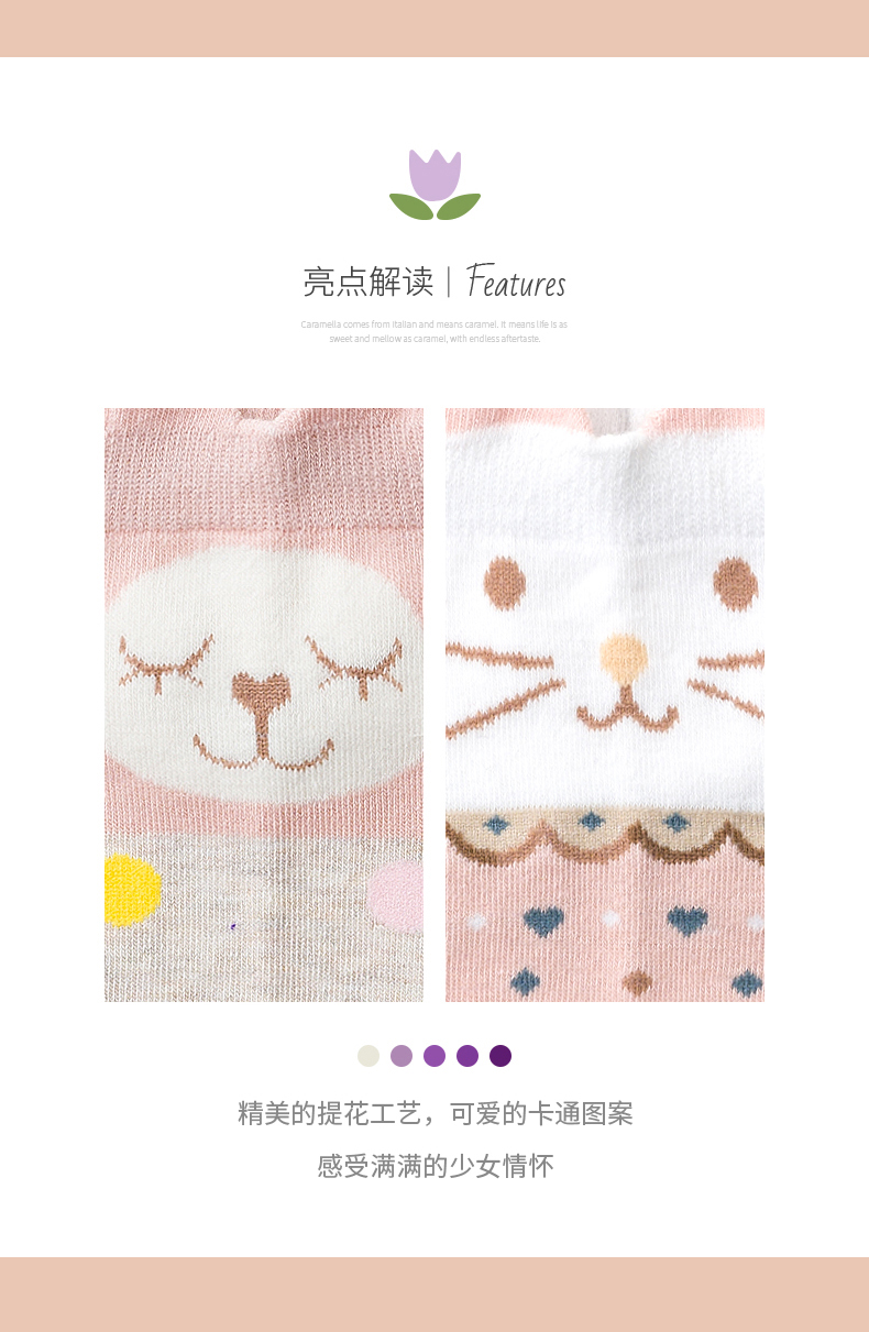 这款CARAMELLA 女款可爱船袜/中筒袜,采用62%棉+35%聚酯纤维+3%氨纶混纺面料制作,具有较好的弹性,透气吸湿,仿手工缝头,平滑不搁脚,不易破损,更加牢固;活性印染,不易褪色;多种花色可选,每天换一种心情。领券链接点此