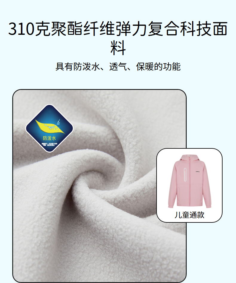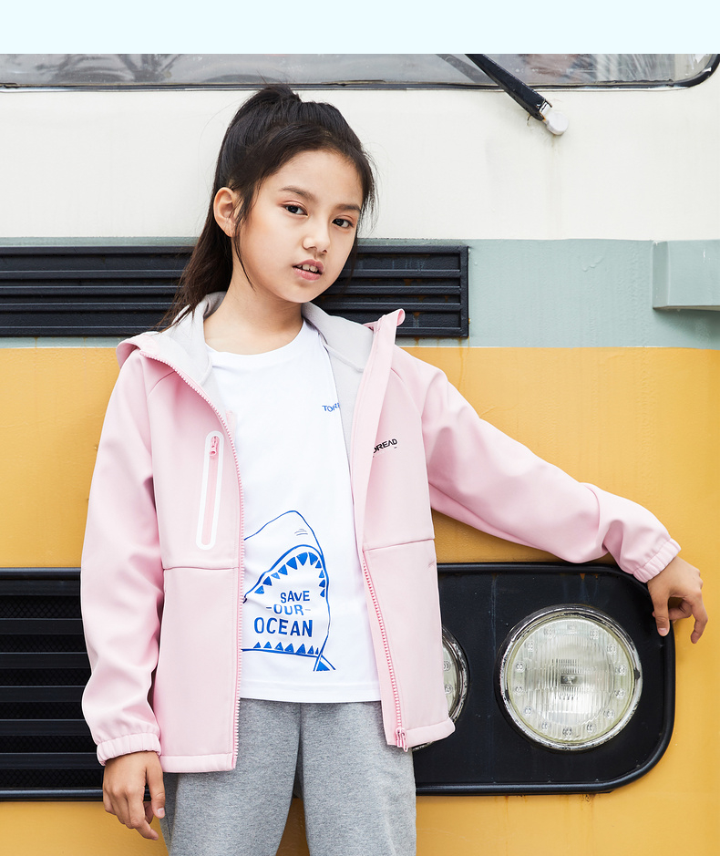 这款探路者 儿童连帽软壳外套,主体是310g聚酯弹力复合面料,面料舒适透气,防泼水,内里一层摇粒绒,轻便保暖速干,还混有10%的弹力纤维,四向高弹设计,灵活伸展不束身;适合深秋天气转凉穿着,也可户外郊游、爬山携带应对多变天气。