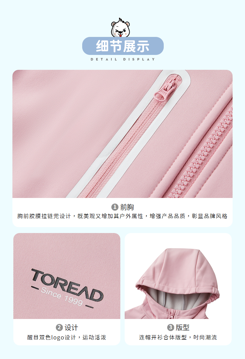 在款式设计上,一体连帽设计,帽口/秋口还有弹力松紧,能更好贴合防风保暖。胸前胶膜拉链口袋,美观时尚,又增添了户外属性,醒目双色LOGO,彰显大牌品质。