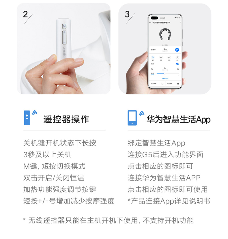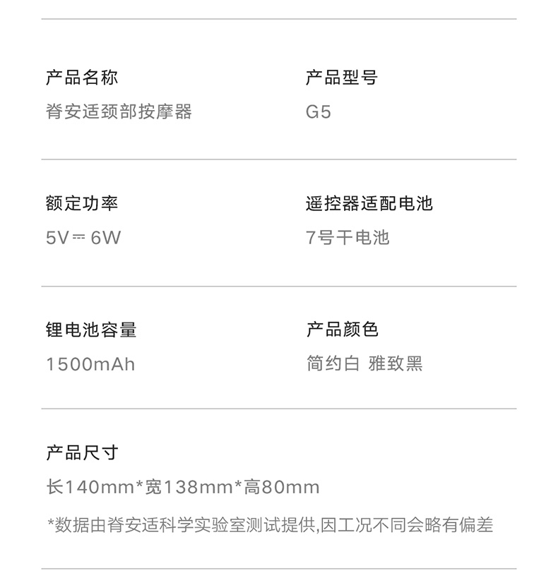 小乔集团&华为联合款 G5新旗舰款颈部按摩仪。脉冲波形相比上一代更加平衡稳定,使用起来更加温和舒适,华为HiLink智连,可App/遥控器/多功能旋钮三种操控。小巧轻便,仅有162g。内置1500mAh锂电池,每天使用2次,每次15分钟,约可续航8天。