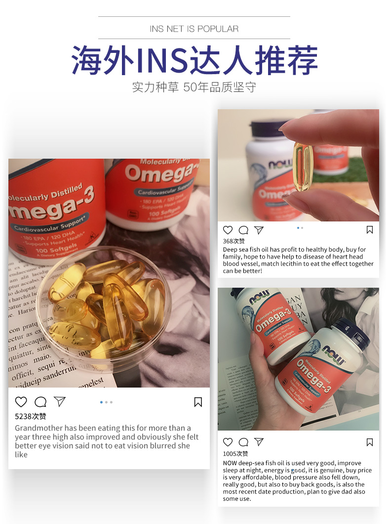 这款NOW 深海鱼油软胶囊是美国原产,鱼油来源于秘鲁出产的沙丁鱼、凤尾鱼及马鲛鱼。经过高真空分子蒸馏处理,既保证了鱼油的高纯度,又最大限度地减少杂质的存在,不含其他任何有害物。