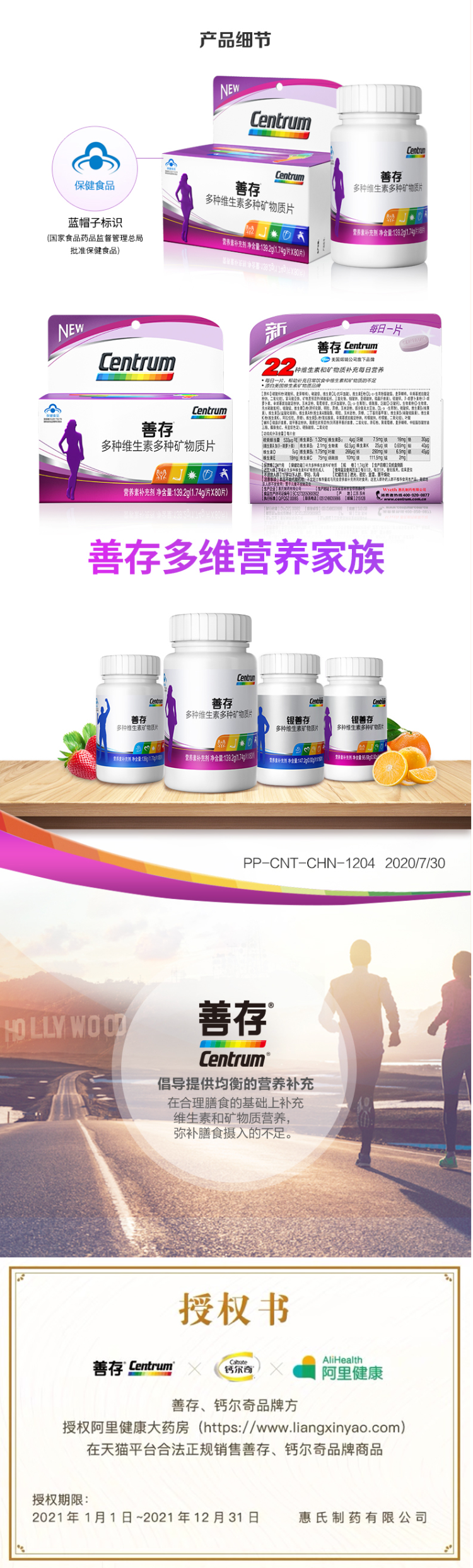 善存是美国品牌,由世界500强惠氏出品,已成为家喻户晓的健康品牌,市场份额超过30%。惠氏善存佳维片能有效地补充日常饮食中维生素和矿物质的不足,其含全面抗氧化营养素,能帮助身体抵抗细胞的自然老化,具有国际领先的微囊技术,不伤害肠胃。