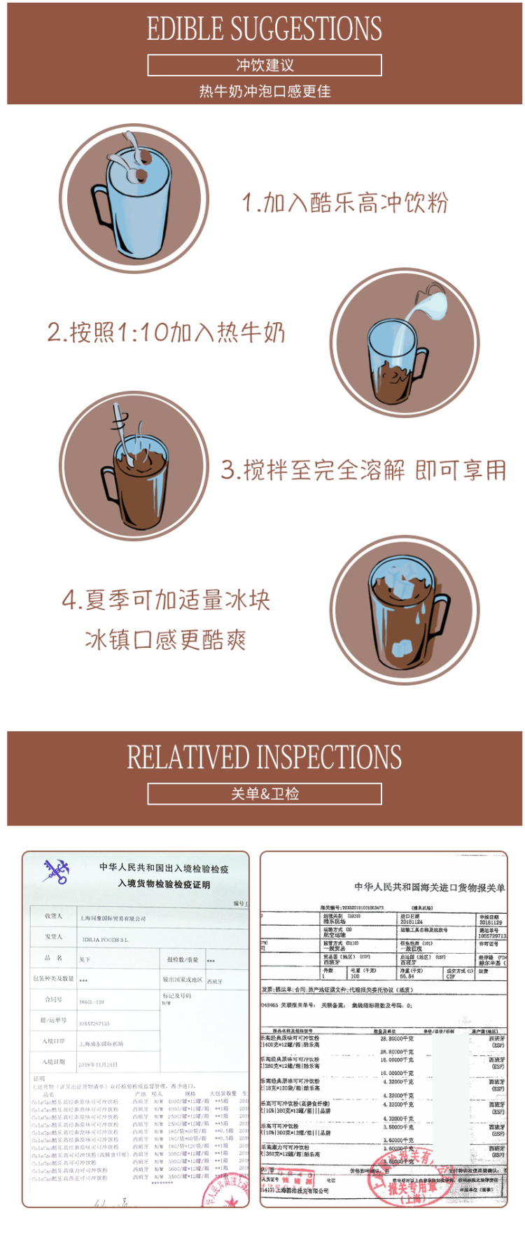 这款ColaCao 经典原味可可粉,西班牙原装进口,精选上好脱脂可可粉,经过一系列加工提炼,粉质细腻不易结块,伴随有浓浓的巧克力香,冲泡后质地细腻口感顺滑。