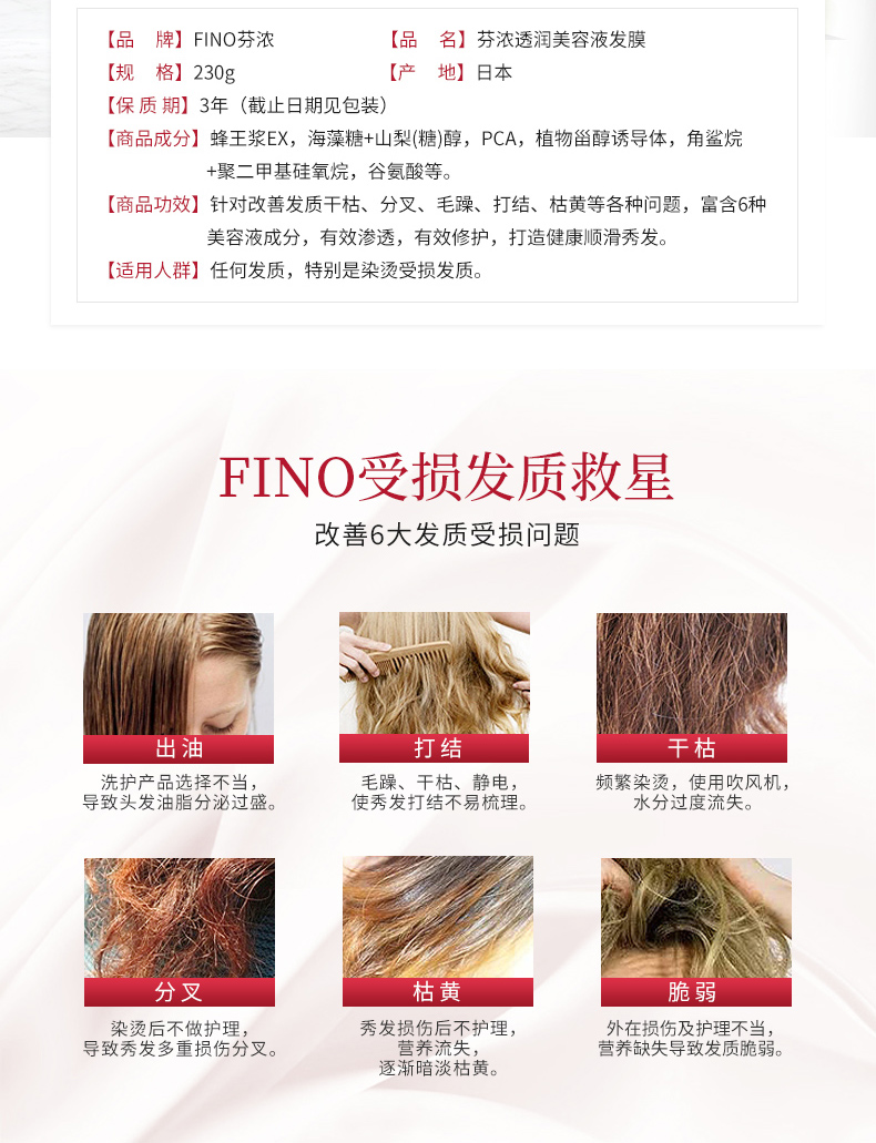 这款发膜富含PCA、海藻糖、谷氨酸、角鲨烷、大豆氨基和蜂王胶提取成分,浓稠的膏状质地,能深入渗透修护毛鳞片损伤,补充及防止头发内部营养流失,保湿滋润,改善受损发质,恢复柔顺亮泽,而且能够保持烫染过后头发的色泽,柔软易梳理,散发青春魅力。规格是230g*2罐。