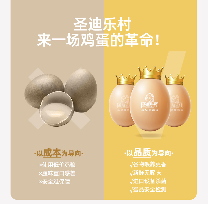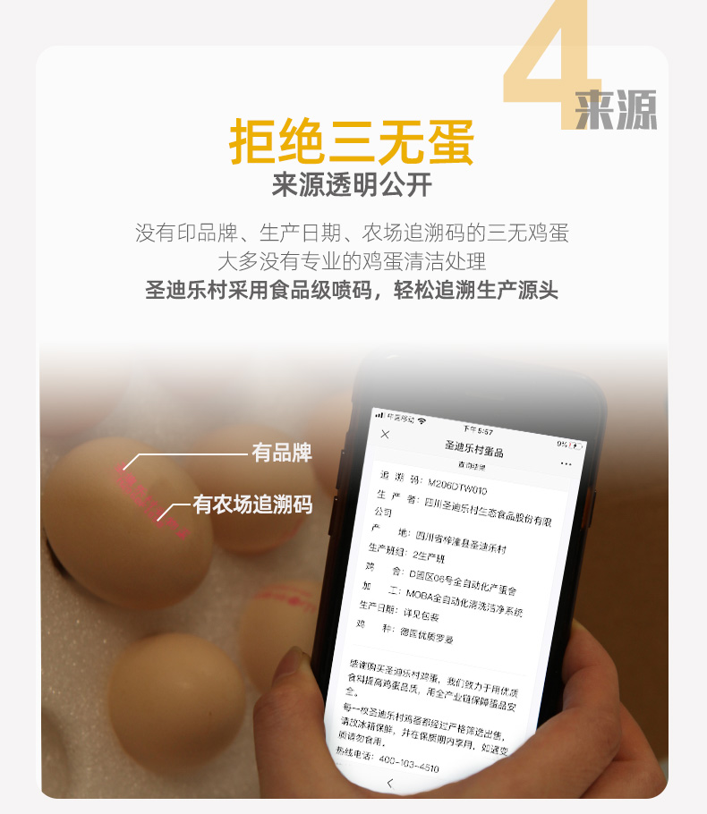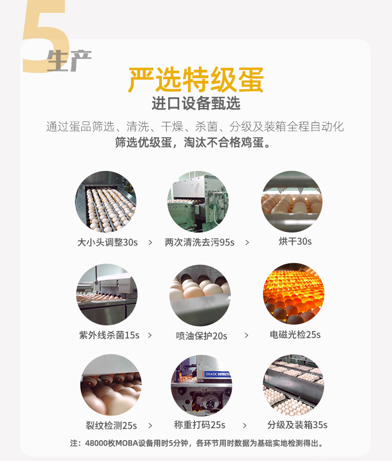 圣迪乐村是国宴峰会指定的蛋品供应商,采用德国罗曼种鸡,谷物喂养,每一个蛋品都可溯源,拒绝使用抗生素激素,同时引进MOBA设备,通过紫外线杀菌,至今未检出沙门氏菌,是放心安全的鲜鸡蛋,达到A级标准。