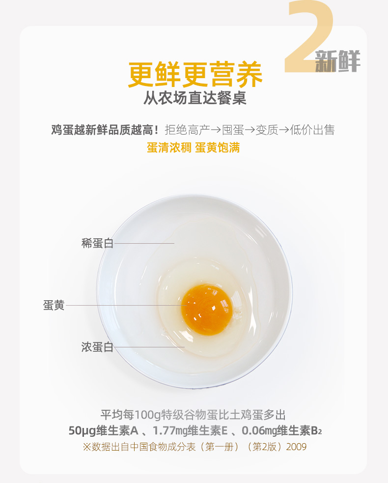 圣迪乐村轻食蛋,是可以直接生食的无菌鸡蛋,源自谷物蔬菜喂养的鸡,蛋清浓稠散发自然清香、蛋黄饱满颜色橙黄,入口清香嫩滑 无腥无菌。蛋壳上有食品级喷码,可轻松追溯生产源头,食用更安心。