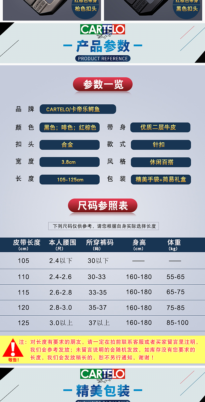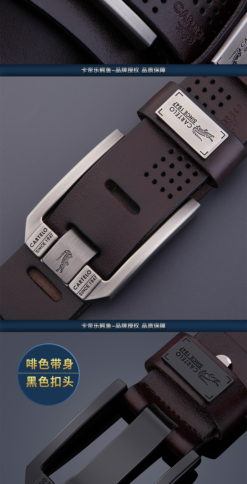 如对腰带长度有要求可联系客服或备注留言。采用优质二层牛皮材质制成,皮质纹理清晰自然,手感细腻柔软,真皮透气性好,久穿不变形;配上合金制成的加宽针扣扣头,古朴大气,突显男士气质。领券链接点此