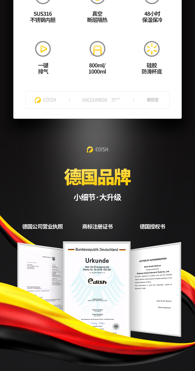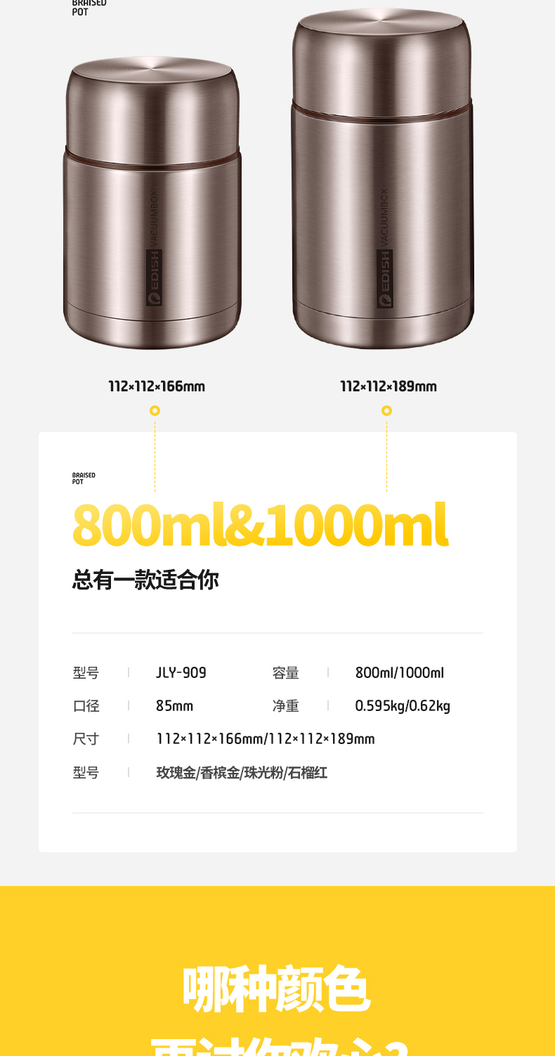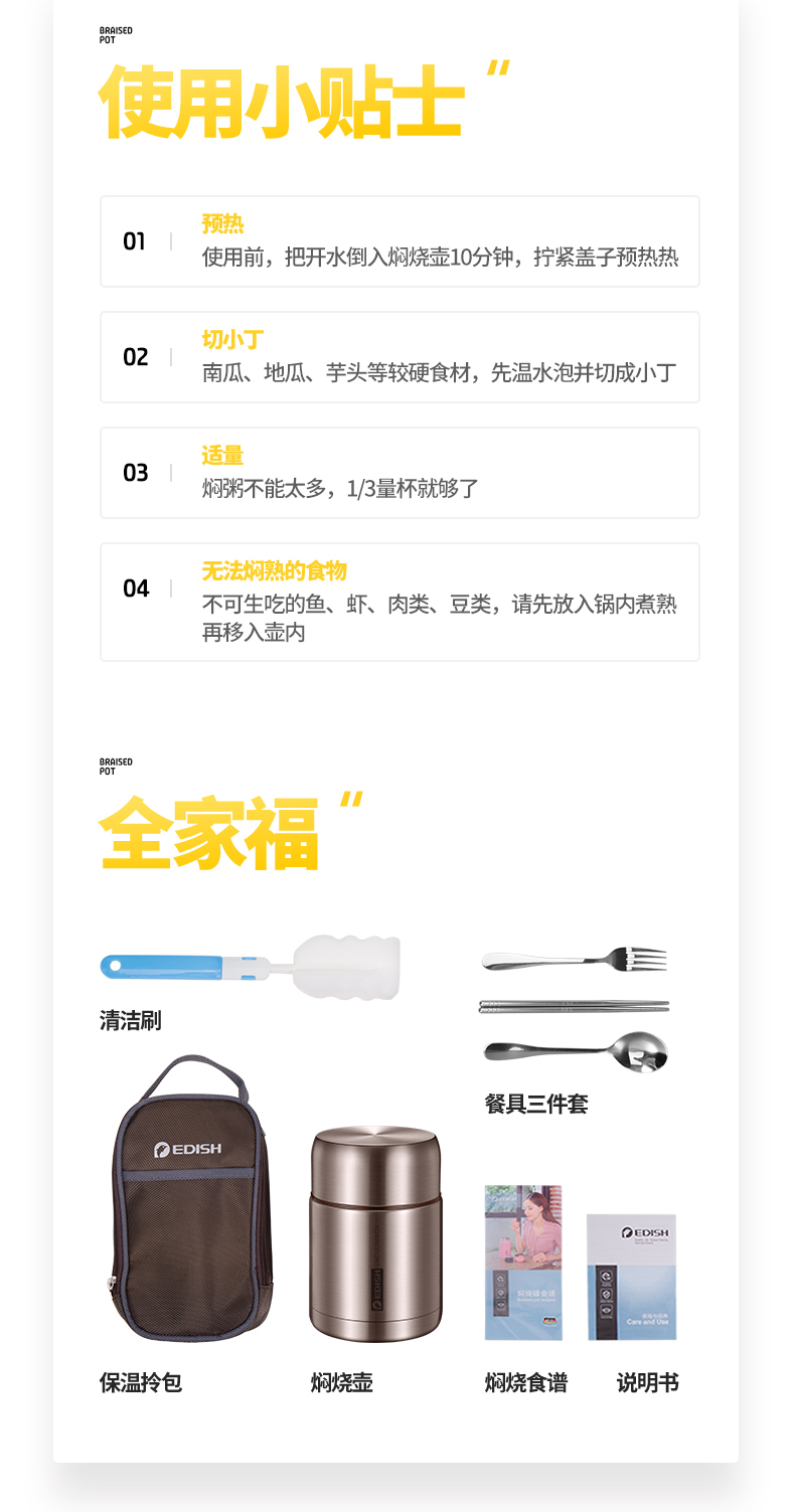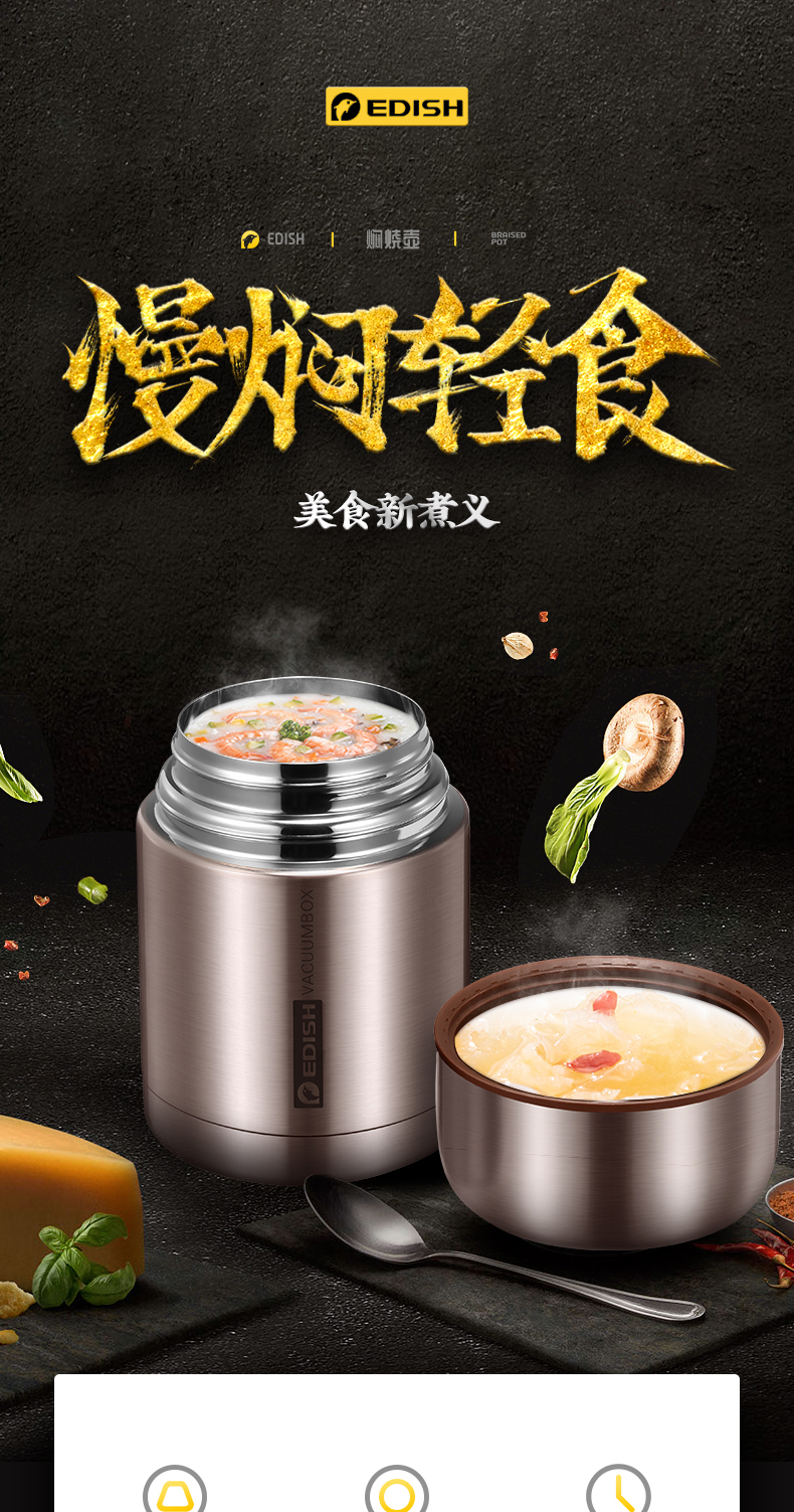 这款壹滴水316不锈钢 焖烧杯,内里是316不锈钢,是医用级和军用级不锈钢,防生锈、耐磨、光亮,健康无毒;双层抽真空隔热技术,保温保冷,安全防漏,内盖带排气阀,气压大打不开时,可轻按排气阀,平衡气压;