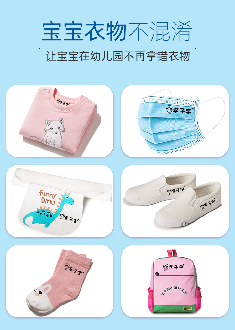 可随意标记宝宝私人物品,简单方便快捷,环保纺织印油,反复印盖3000次,卡通造型,水洗不褪色。再也不怕东西拿错了,下单备注姓名!领券链接点此