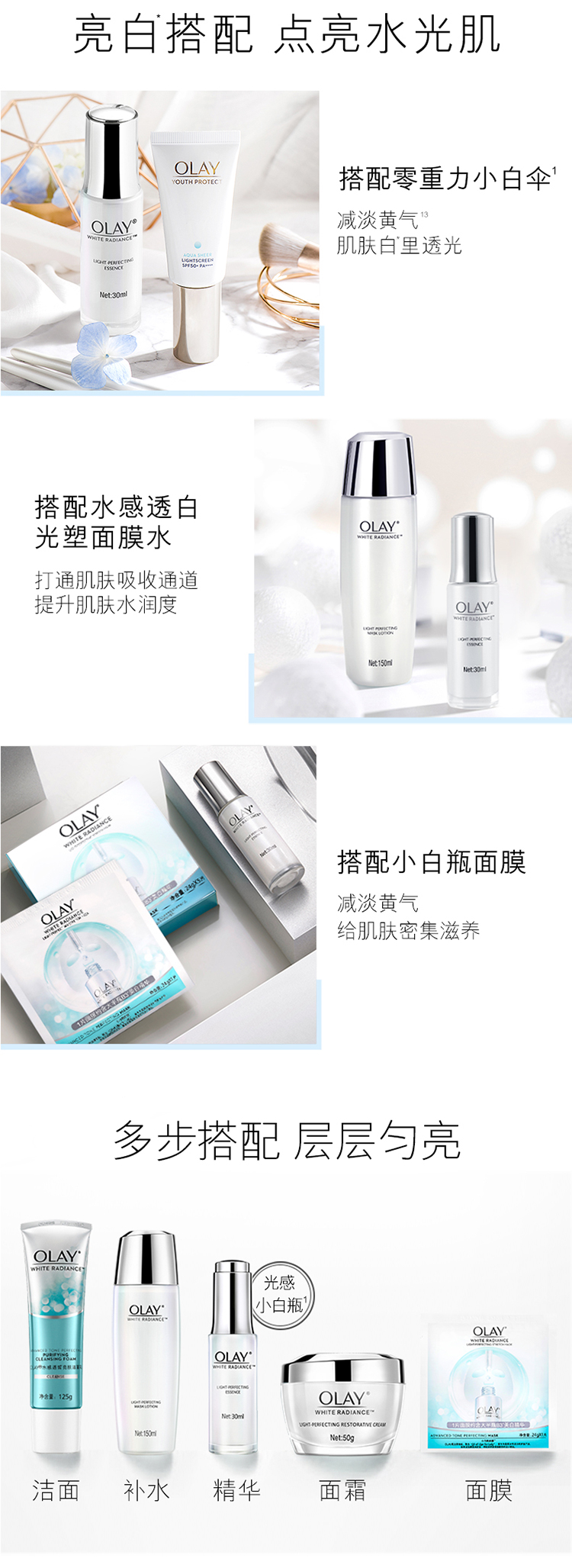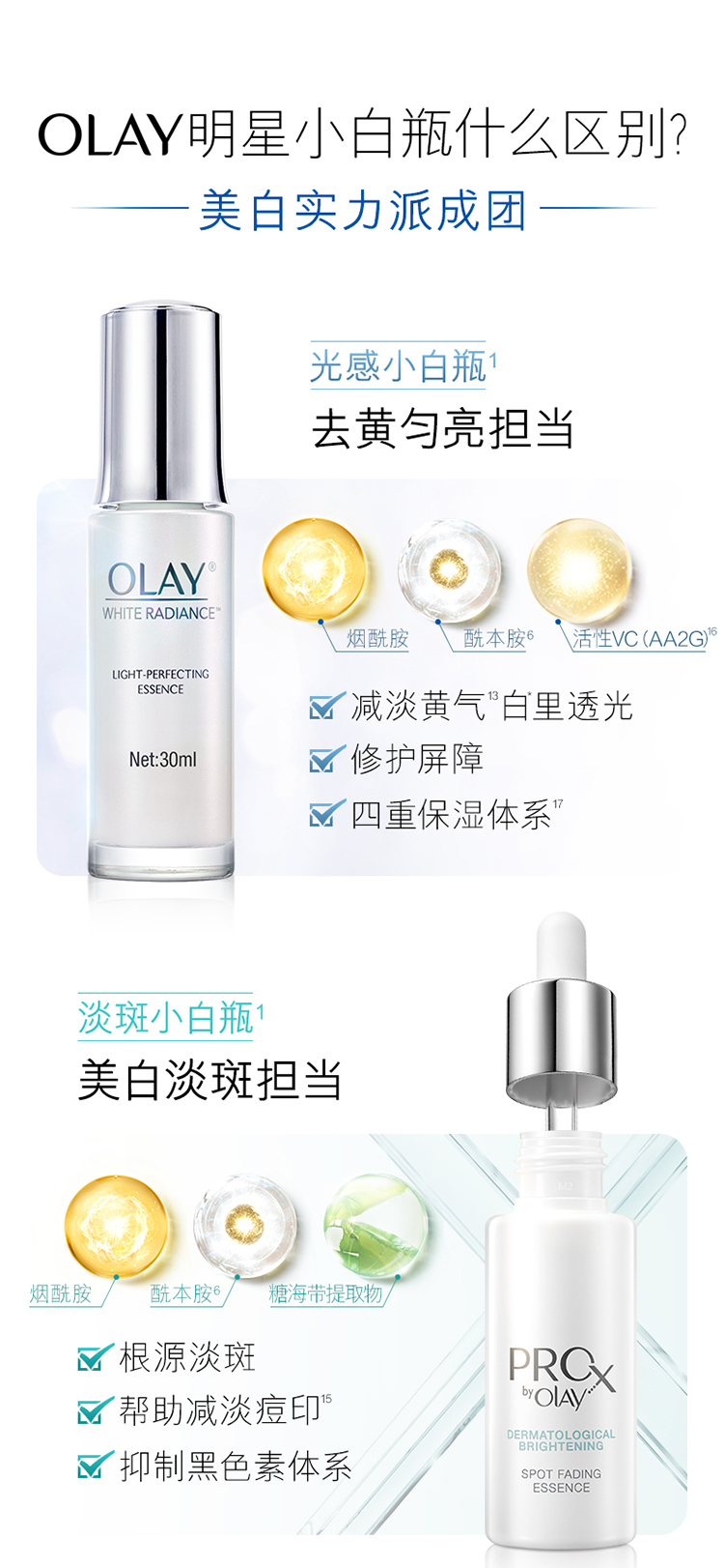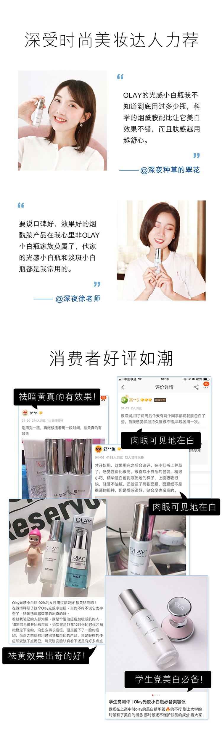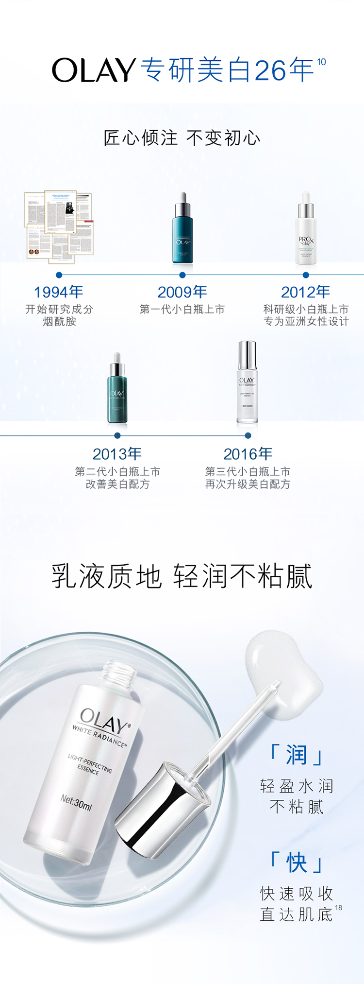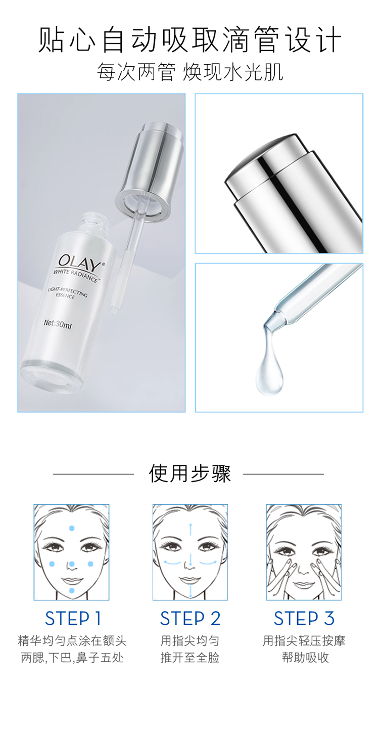 这款水感透白光塑精华露是原淡斑小滴管精华的升级版,是广为人知的光感小白瓶,其定位是高效美白,去黄提亮,改善肌肤通透感的高性价比美白精华。