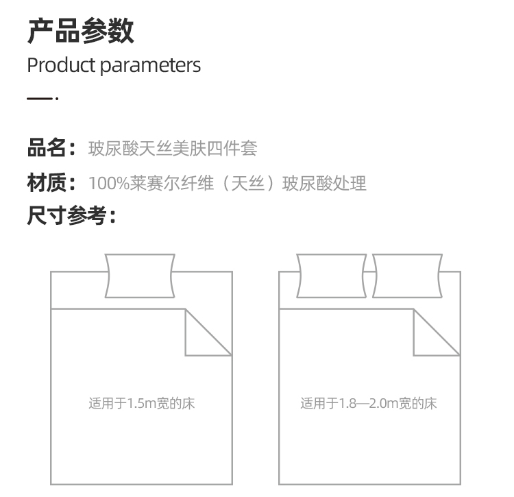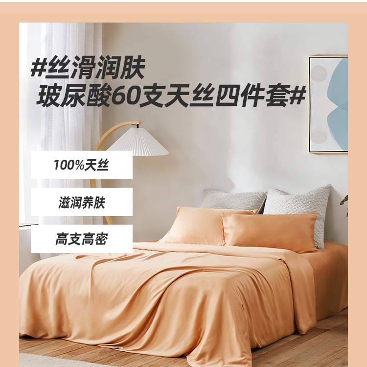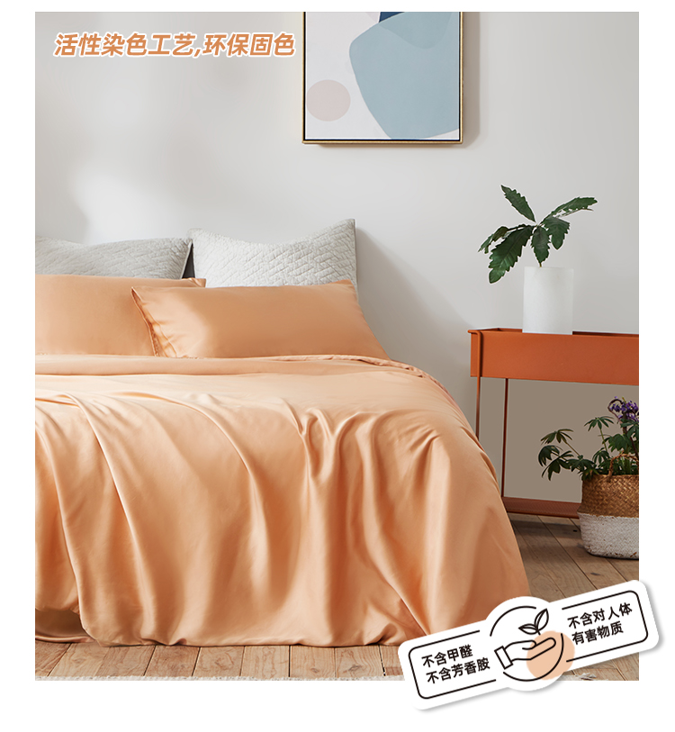 这款淘宝心选的床上四件套定位高端,使用的是100%的兰精天丝面料,亲肤顺滑,自然拥有湿气管理功能,即使夏季也会带来凉爽感受,60支高支高密织造,触感爽滑,犹如丝绸般柔软亮泽,贴肤舒适,天然的活性印染工艺,持久固色,而且不含甲醛和芳香胺,使用放心。