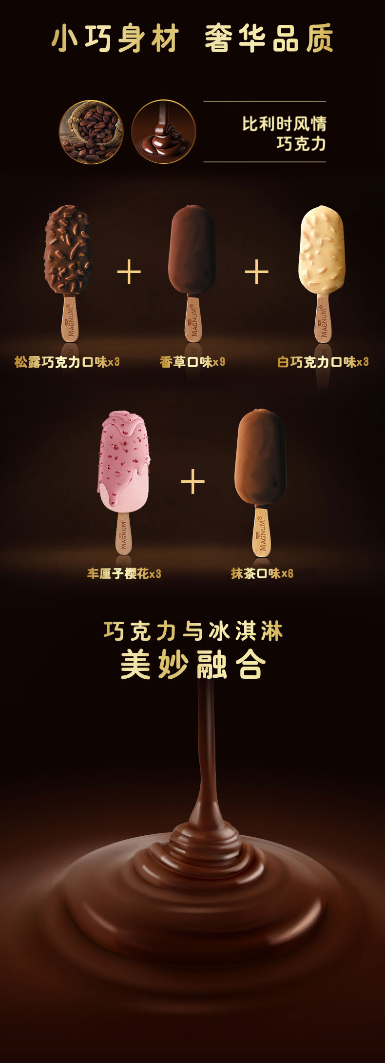 梦龙作为巧克力脆皮雪糕的鼻祖,它的脆皮是真正的比利时巧克力,内心非常的细软,冻在冰箱里,基本1、2个月都会保持这样里嫩外脆的感觉。