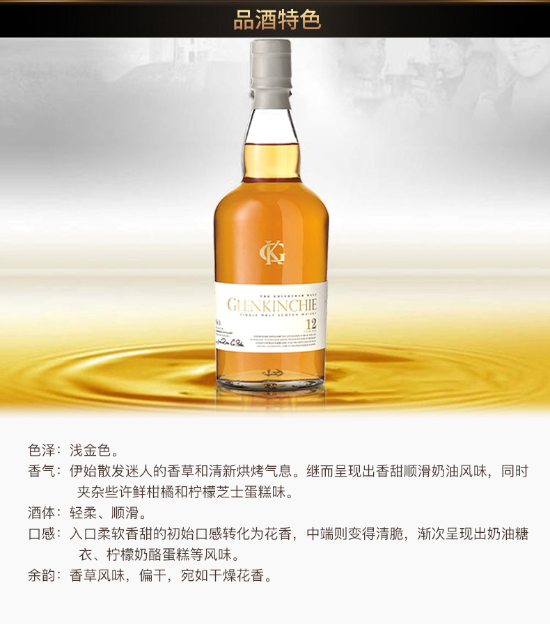 格兰昆奇的成酒是香草和烘烤气息,具有香甜顺滑的奶油风味,后调夹杂着些许鲜柑橘和柠檬芝士蛋糕的味道,酒体轻柔顺滑,余韵具有香草气息,宛如干燥花香。