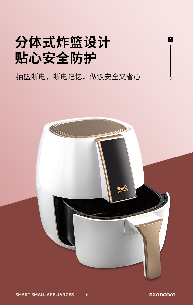 小米生态链企业出品,4升大容量 智能空气炸锅,外观简洁方便大气,微晶智能触摸面板,海量云食谱一键制作,小白也能秒变大厨,内置隐藏感温电子眼,灵敏感知食材温度变化,保障食物最佳口感,抽篮断电随取随拿,断电记忆功能,放回炸篮继续工作,4L容量,可满足3-4口之家使用。