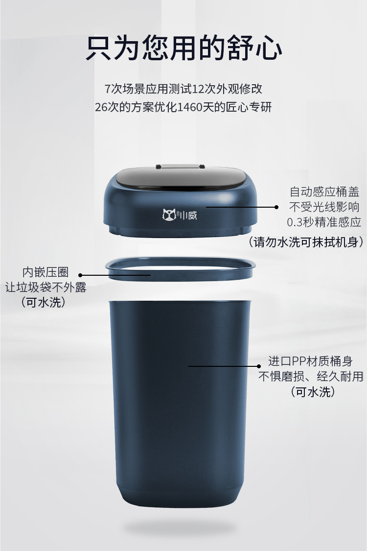 天猫家绮旗舰店65元,可领20元优惠券,实付45元到手;9L大容量/进口环保材料/红外感应。黑科技!高颜值智能垃圾桶,家里一定要用这种,摆着都高档,自动感应,静音开合,更人性化的感应距离,自适应延时闭合技术,智能科技,简单生活领券链接点此