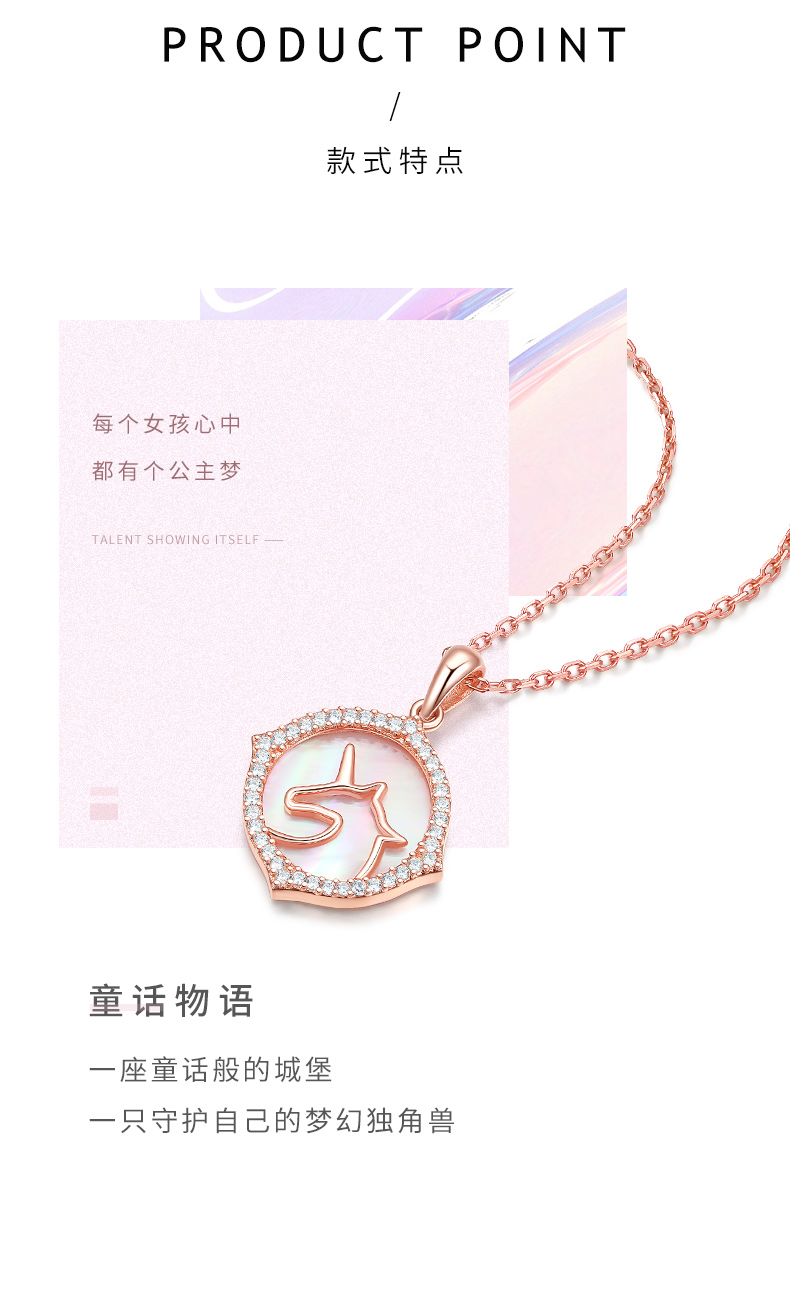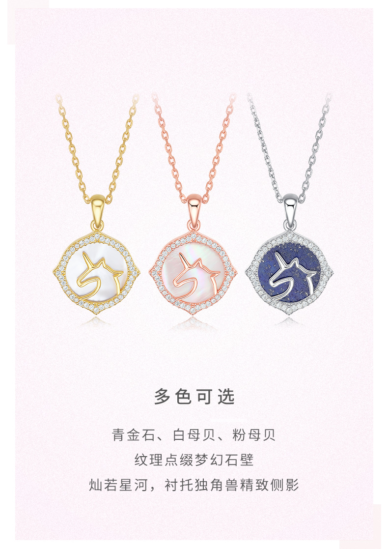 天猫周大生饰品旗舰店,8月6-8日 88会员节,¥409元88狂欢价,-200元优惠券,-40元 (每满200减20元)跨店满减,=169元 到手价,物语:童话般的梦幻城堡,守护公主的独角兽。独角兽是神话传说中的吉祥神兽,寓意圣洁、高贵和勇气,独角兽锁骨链,周围镶嵌一圈闪亮的锆石,佩戴美观,做工精细,细节打磨到位,链条顺滑,佩戴更舒适。