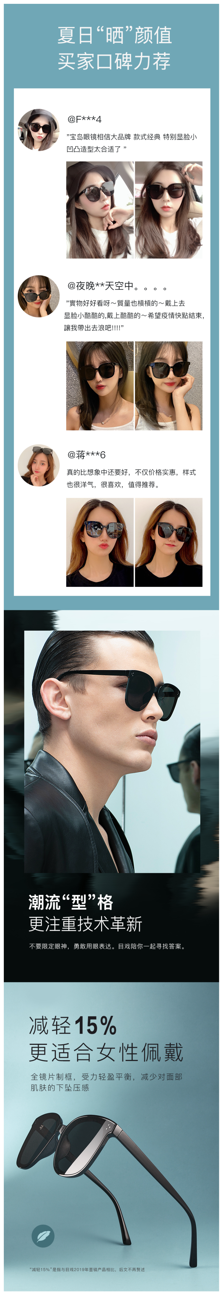 这款宝岛太阳镜是一款防紫外线偏光墨镜,2021年的新款,全镜片制框,受力轻盈平衡,多层镜片合一,内外双镀,抗摔耐磨。高清全尼龙镜片能将眩光、散射光、折射光滤除,让视野更清晰,同时减少视觉疲劳。