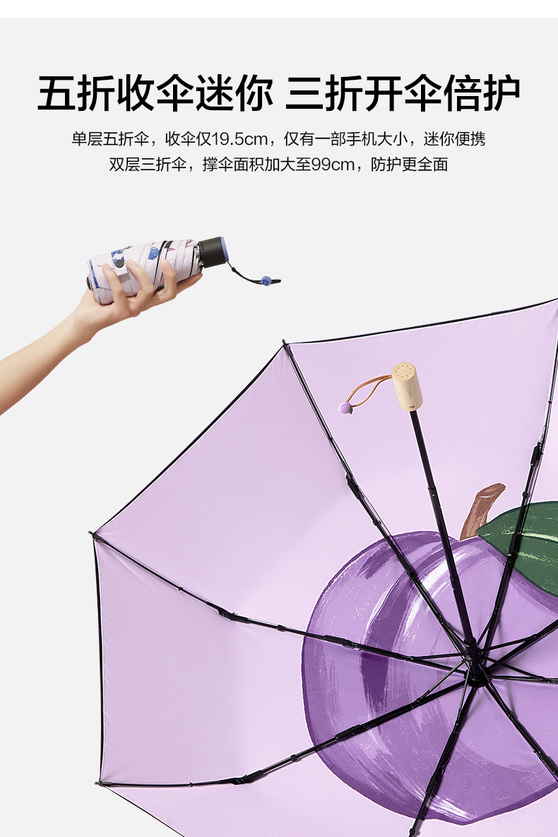 天猫蕉下官方旗舰店209元,可领40元优惠券,叠加跨店满减20元,实付149元到手,是正价699元的2.1折;晴雨两用 UPF50+ 水果趣味图案。