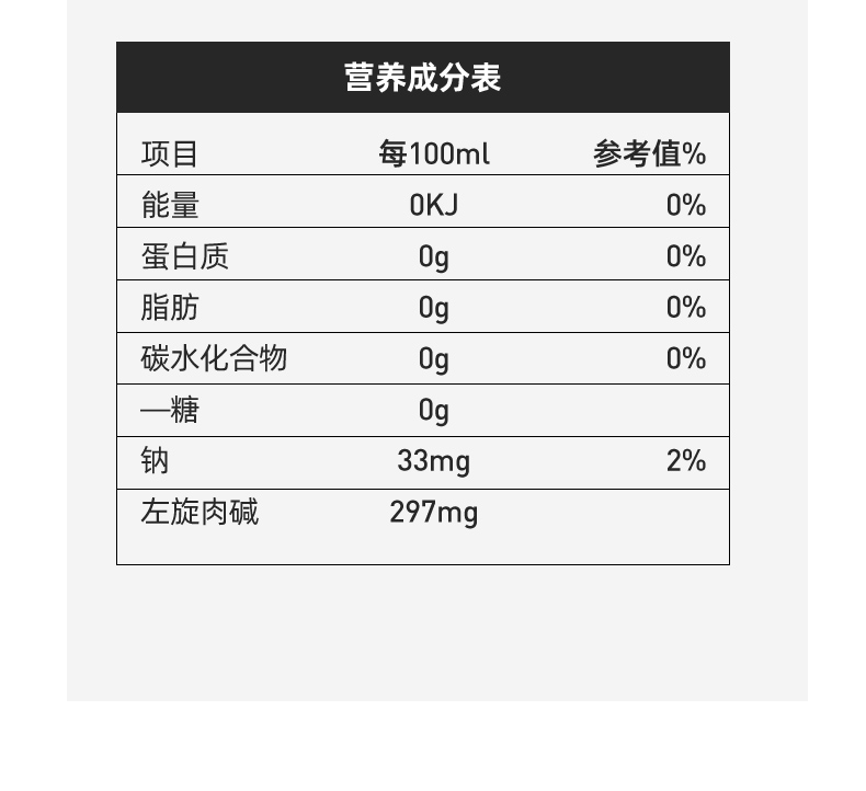 这款诺特兰德Nutrend左旋肉碱气泡饮料,每100ml添加了297mg的左旋肉碱,0糖分、0脂肪、0卡路里添加,很适合健身时喝,既能作为健身时的补剂,也可当做日常饮料。
