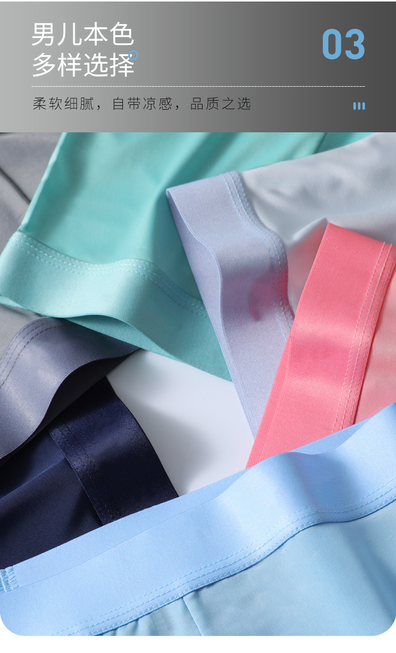 有冰丝、莫代尔、纯棉可选,价格相同。这款MiiOW 猫人 冰丝平角裤,大身采用87%科技冰丝面料中混入13%弹性纤维。面料高回弹,任意拉伸不束缚,抽针工艺穿着更加舒适,清爽透凉,如同丝绸般爽滑,轻盈舒适,“零感”无负担。