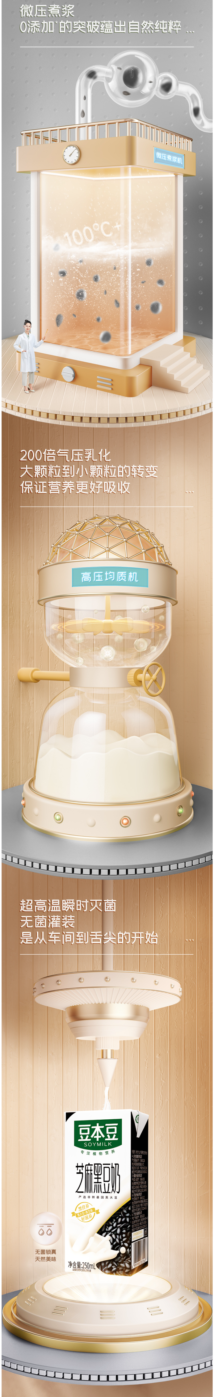 豆本豆 非转基因黑豆奶,严选非转基因黑大豆为原料,全豆微米级别研磨技术,破壁提纯技术萃取,每100ml含3.0g优质植物蛋白,醇黑营养,口感香浓丝滑不添加食用香精和防腐剂,无菌灌装,还原本味。