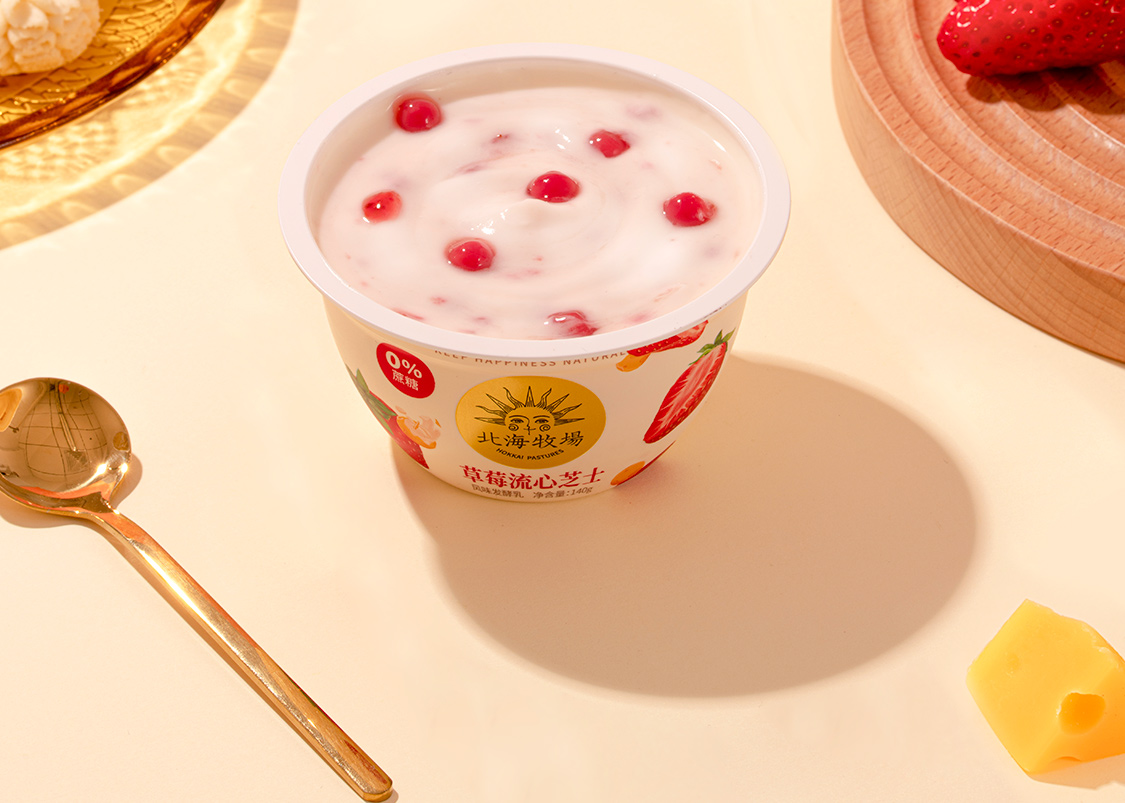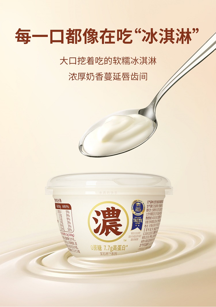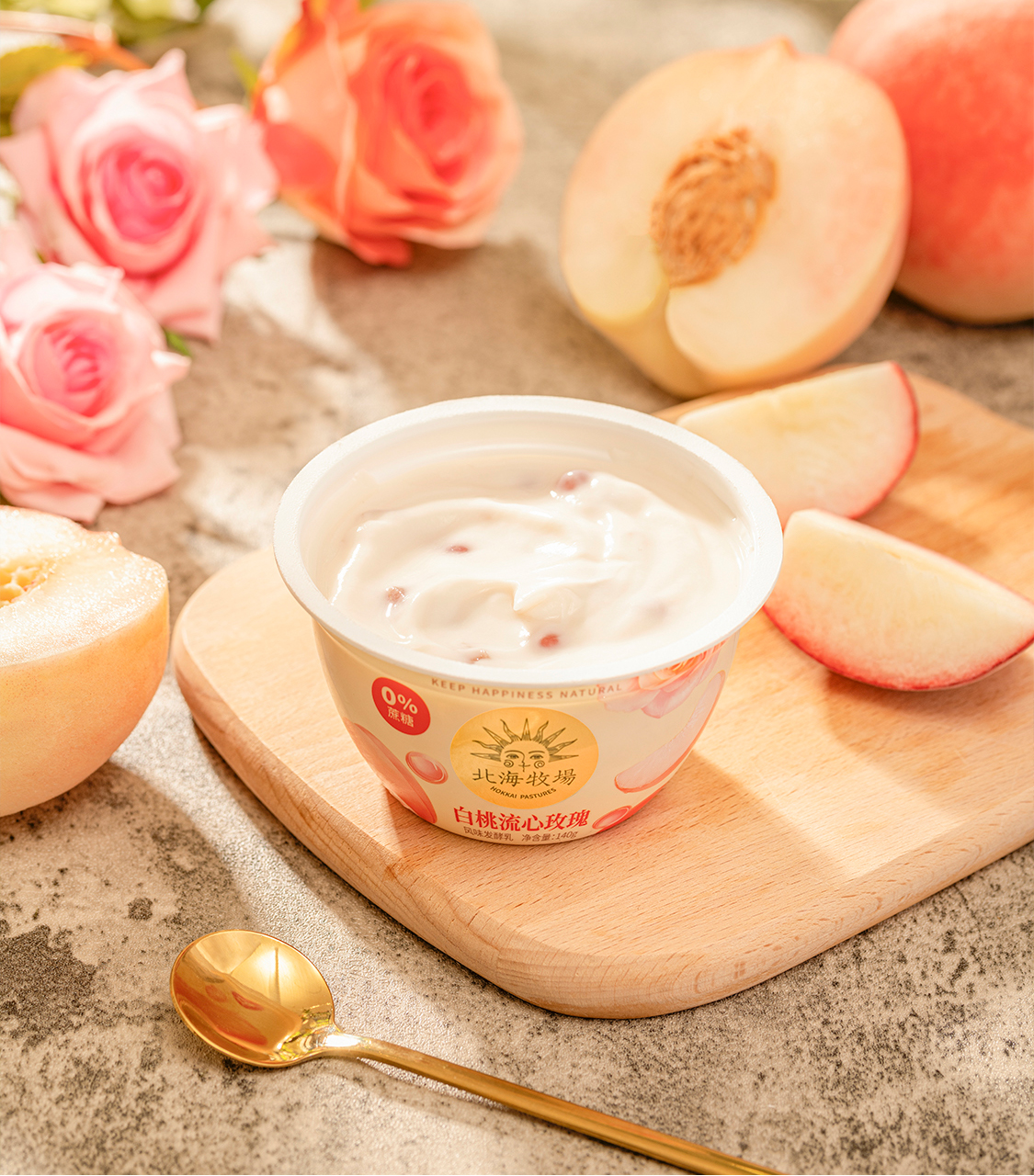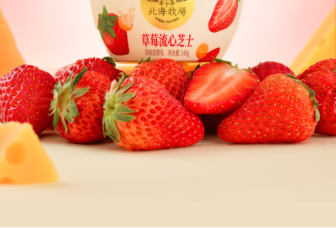 使用纯生牛乳(鲜奶)发酵,添加芝士流心珠和大颗粒草莓、桃子果肉、重瓣玫瑰花,拥有7.7g高蛋白含量和182mg/杯高钙,蛋白质含量是国家标准的2.3倍,不添加稳定剂、增稠剂,口感香醇浓厚,非常健康,一杯热量和三分之二苹果相当。