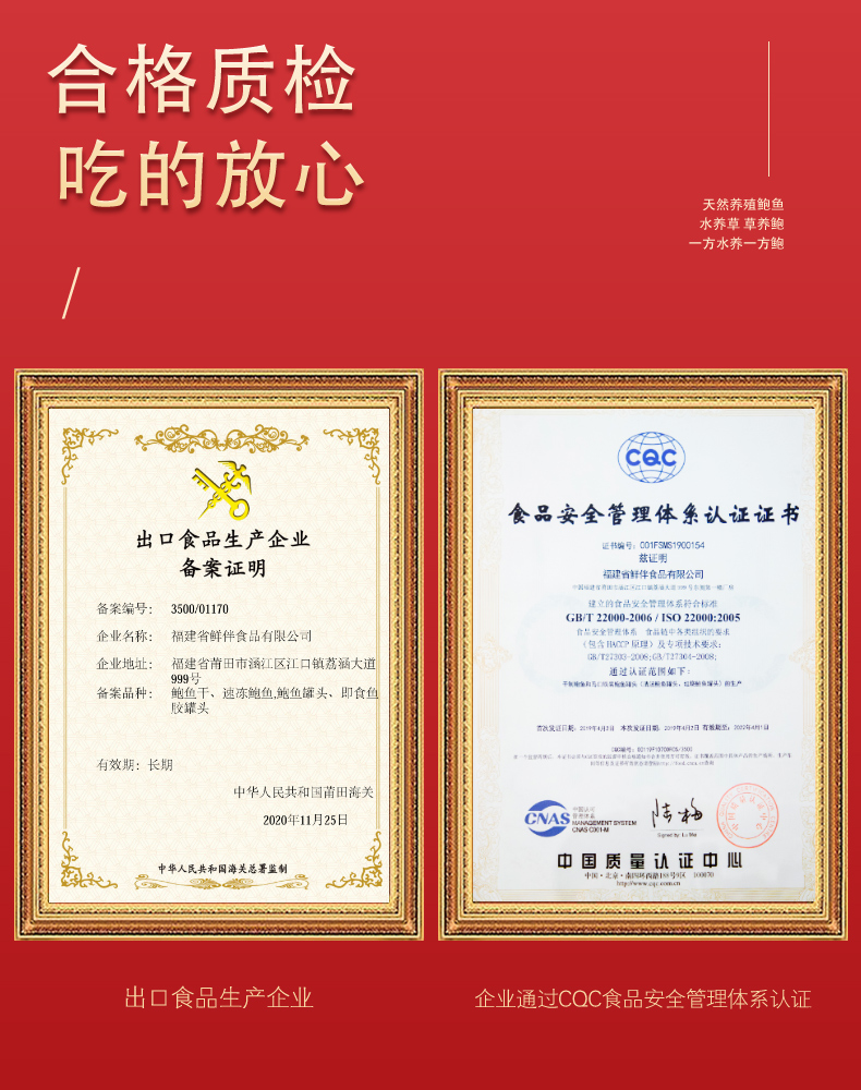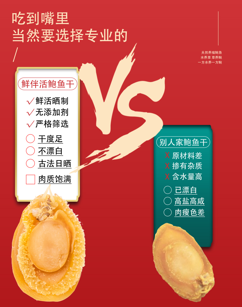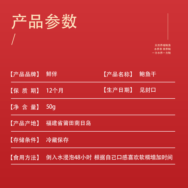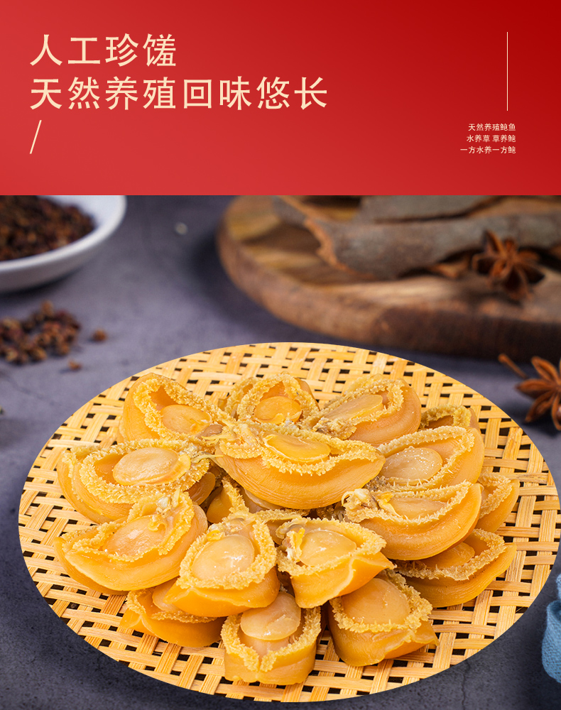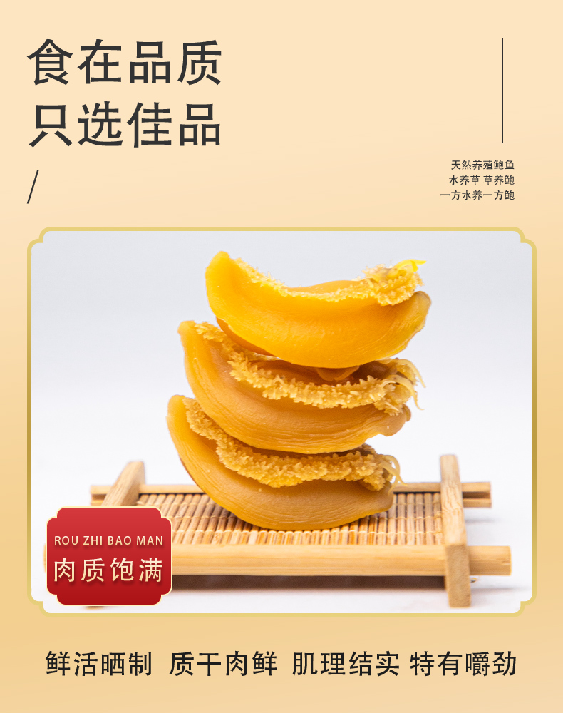 这款鲜伴淡晒特级大鲍鱼干,产自自福建东南部兴化湾的南日岛,在纯净海域自然生长,人工捕捞,经过自然晒干而成,不是缺氧鲍,干度是8~9成,收到后需要泡发。