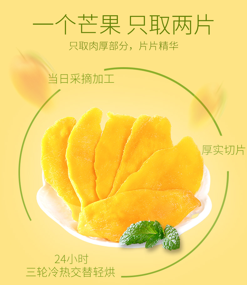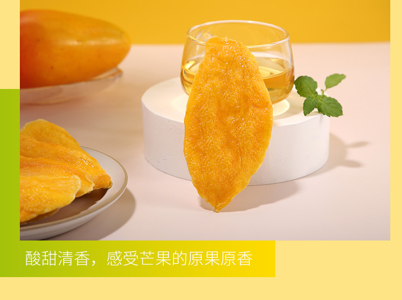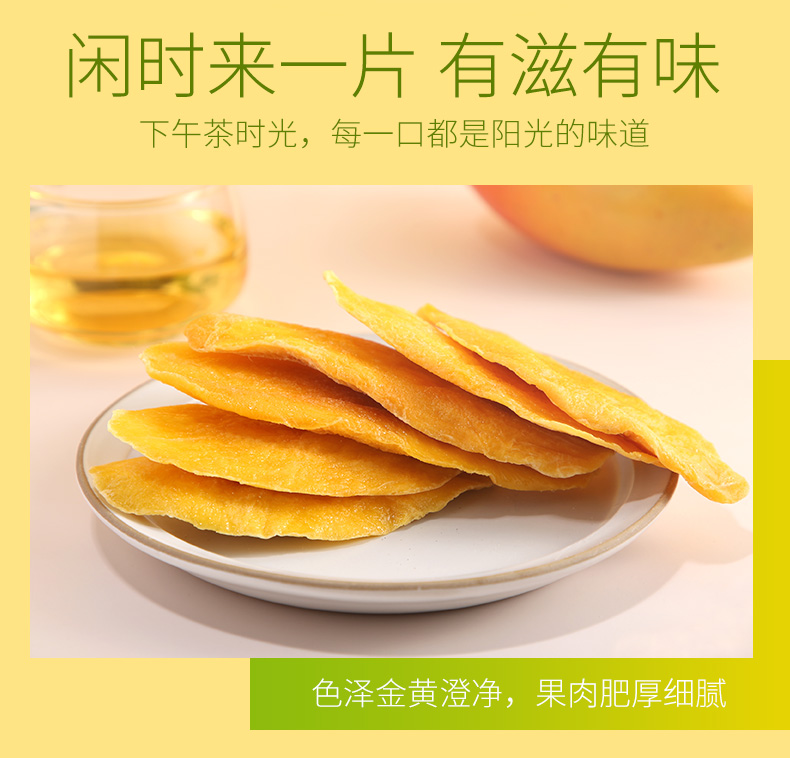 这款溜溜梅 芒果干,以东南亚的新鲜芒果味原料,经过去皮切片、脱水、手工蜜制等工艺,保留芒果的营养成分和天然性,无任何添加剂,果肉厚实,果香四溢,切片均匀,酸甜可口,软度适中易消化,规格:100g*3袋。