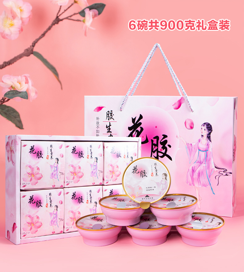 鱼胶即鱼鳔的干制品,富胶质,故名鱼胶,也称鱼肚、花胶。与燕窝、鱼翅齐名,是“八珍”之一,素有“海洋人参”之誉。主要成分为高级胶原蛋白、多种维生素及钙、锌、铁、硒等多种微量元素。其蛋白质含量高达84.2%,脂肪仅为0.2%,是理想的高蛋白低脂肪食品。是人体补充、合成蛋白质的原料,且易于吸收和利用。