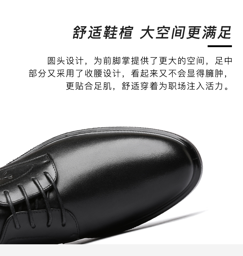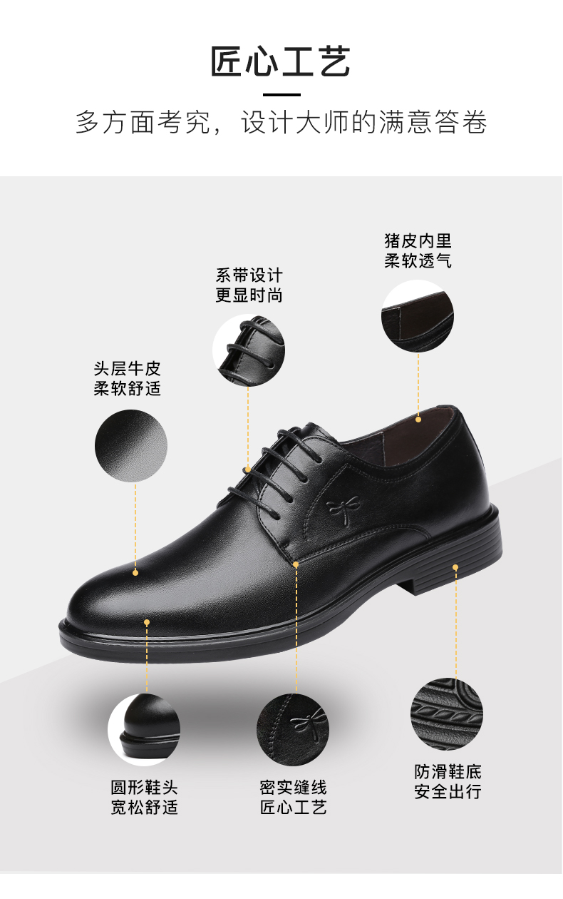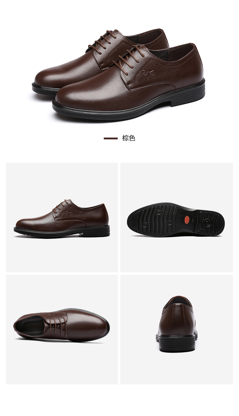 红蜻蜓多年老牌,男士皮鞋,选用头层牛皮材质,保留皮肤天然毛孔,透气性好不臭脚,耐磨耐穿,鞋面内里采用更为柔软的猪皮,柔软舒适,呵护足部肌肤。深U型后跟,行走稳健。经典圆头设计,休闲商务百搭穿着。