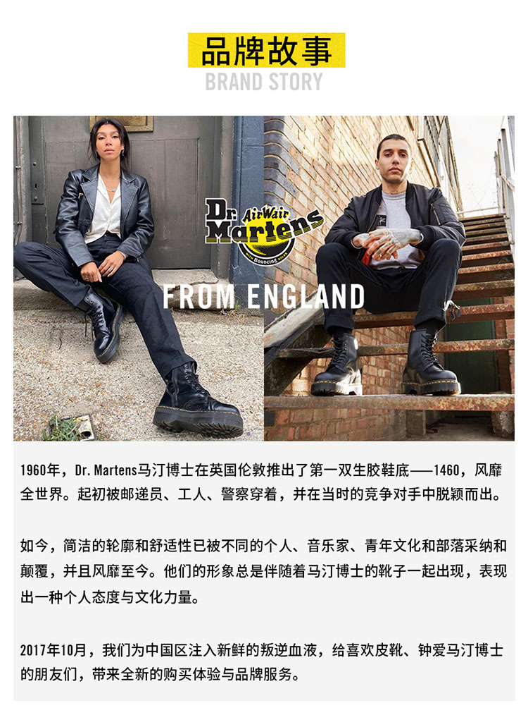 马丁靴作为时尚潮流的元素符号,不仅是一个鞋靴款式,更是特指英国Dr. Martens(马丁医生)品牌。当年Dr. Martens发明的马丁靴,现在已经火遍全球,是时尚元素,是朋克精神的代表,也是年轻人必备的一款潮鞋。