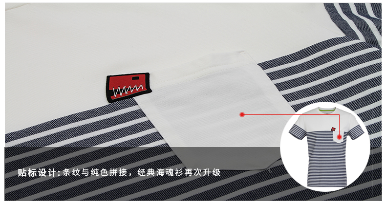 在款式和细节上,合身版型,后脖颈是无感标签,不会刺激到脖子,同时后领还有本布防变形条,耐洗耐穿。衣身是横条纹设计,简约时尚。