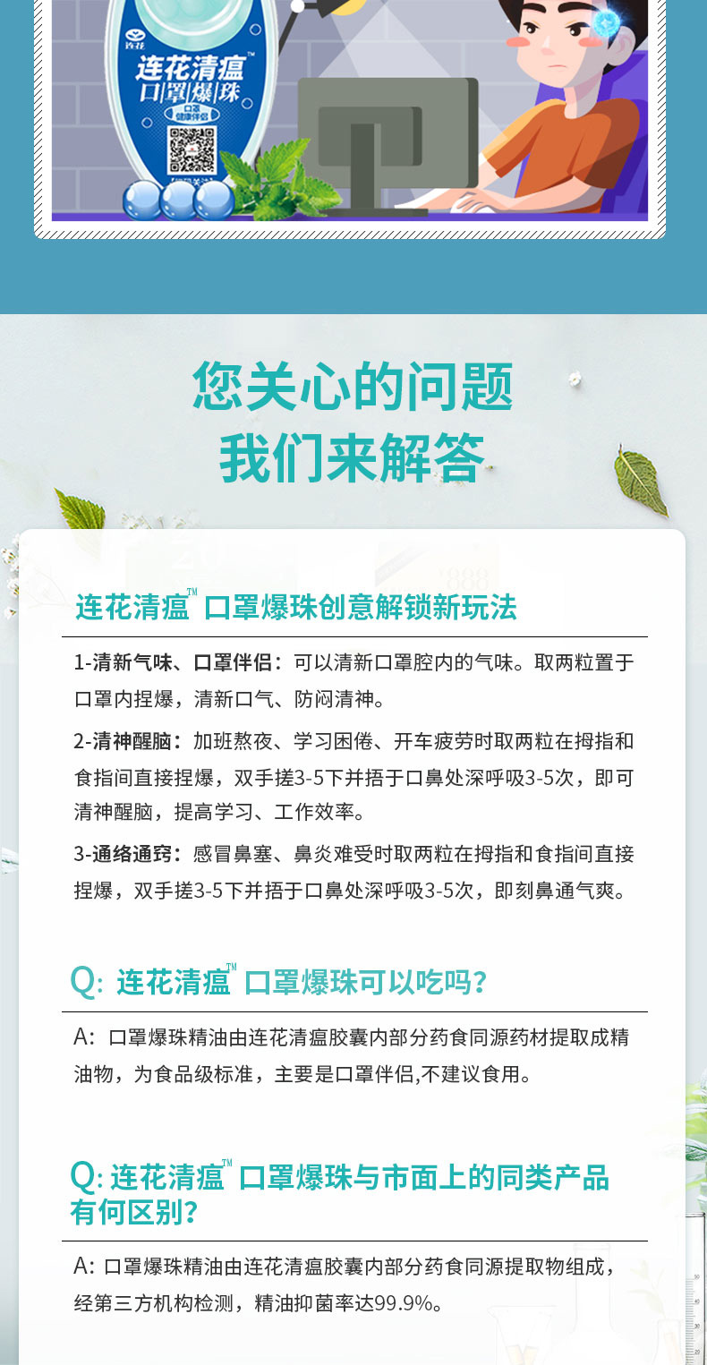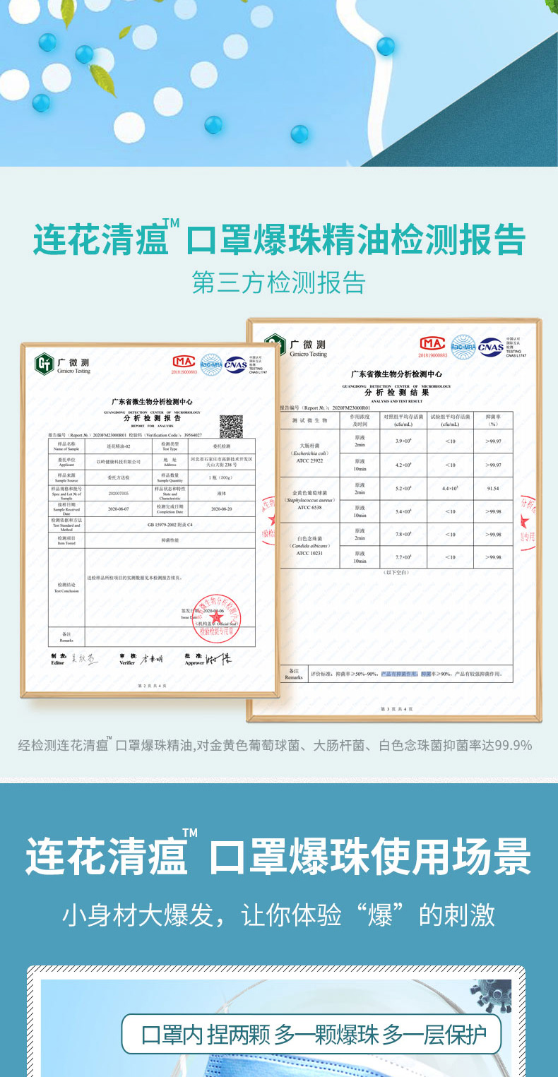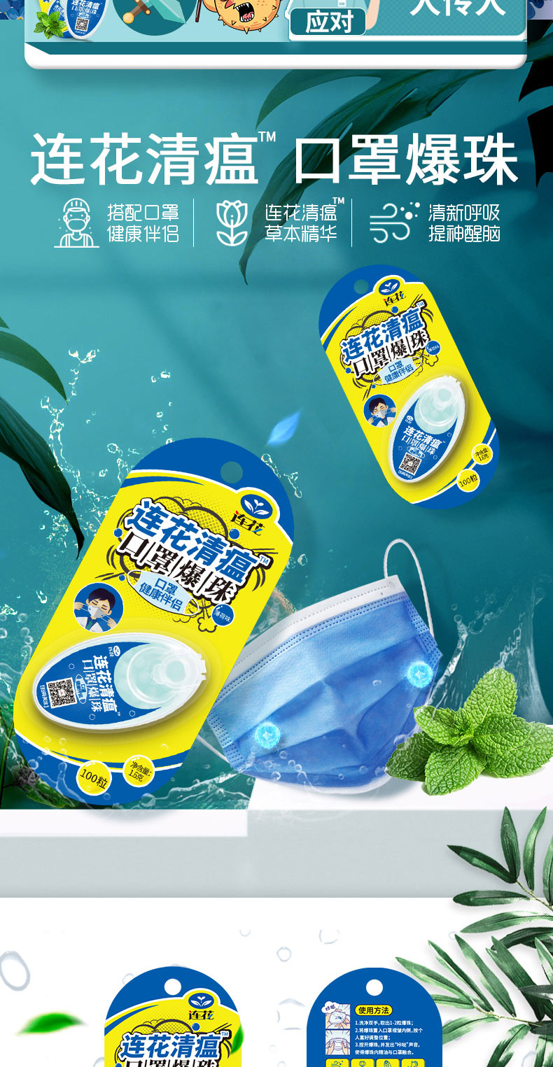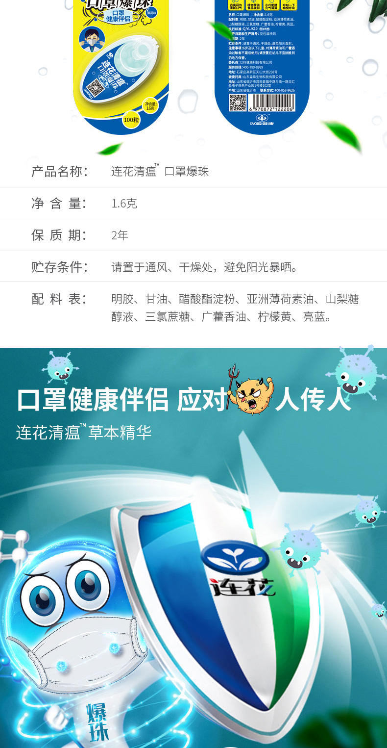 天猫连花旗舰店39.8元,可领10元优惠券,实付29.8元到手,规格为100粒*2盒,连花清瘟口罩爆珠,提取自连花清瘟本草精华,为药食同源的精油组成,防止口罩内的异味伤害,同时抑菌率高达99.9%。