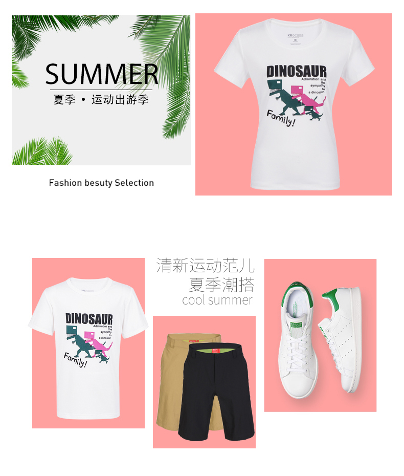 在款式和细节上,男合身/女修身版型,后脖颈是无感标签,不会刺激到脖子,同时后领还有本布防变形条,耐洗耐穿。胸前是可爱恐龙主题印花,非常可爱。