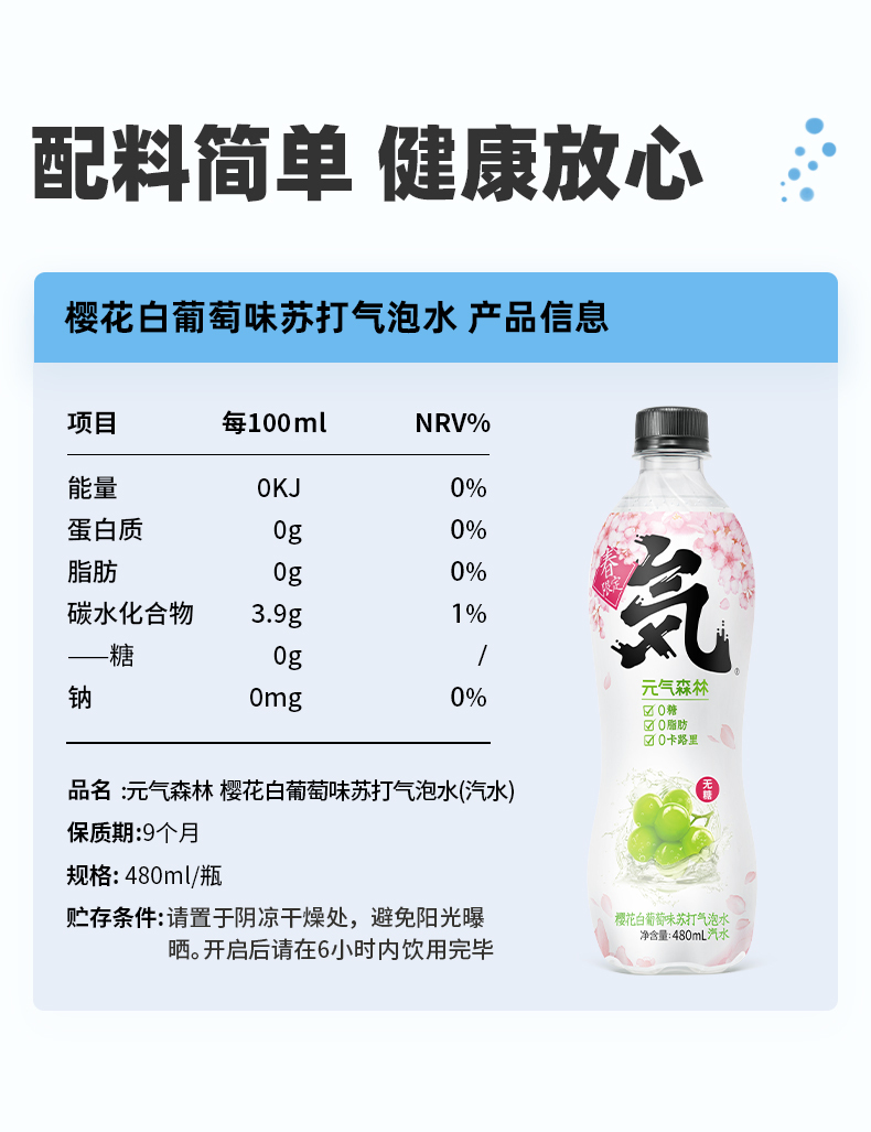 元気森林 白桃味苏打气泡水饮料有气无糖,经典白桃口味,是一款用“赤藓糖醇”取代白砂糖的健康汽水,0糖分0脂肪0卡路里,怎么喝都不用担心会发胖,而且糖尿病人也能饮用,冰箱冷藏后,口味更佳。